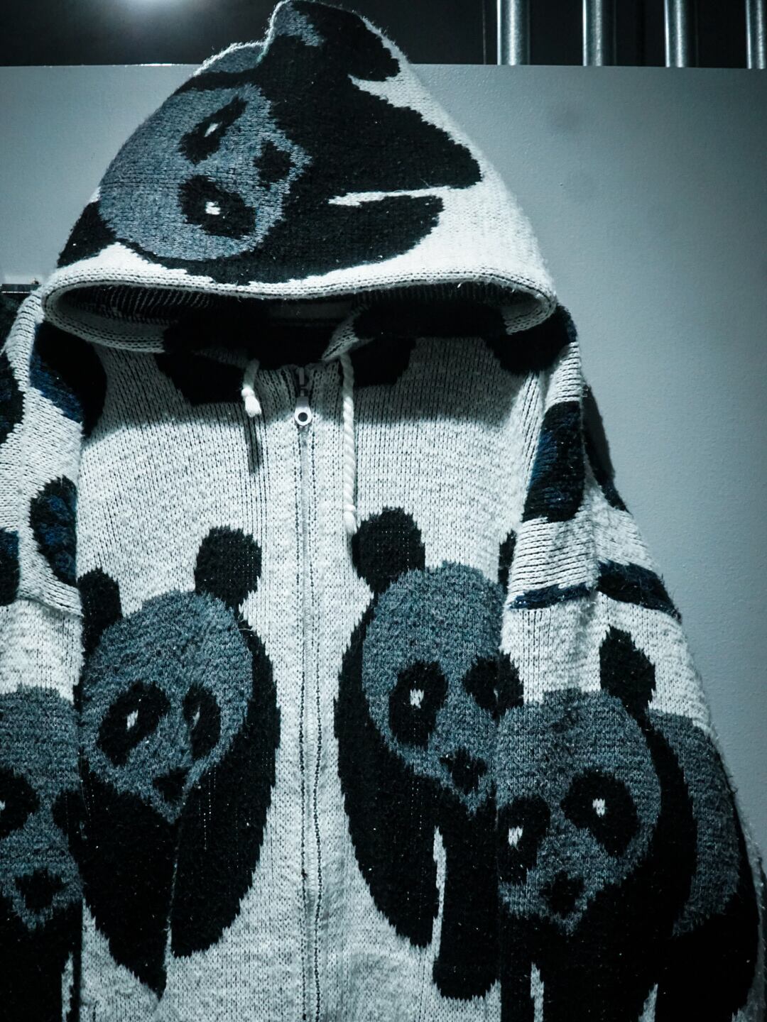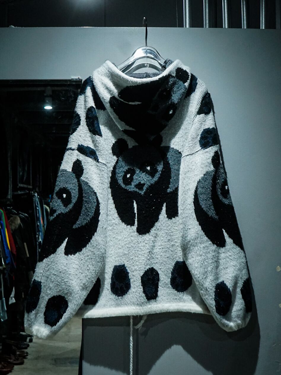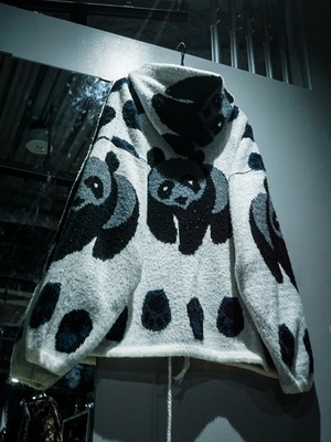 フワッと柔らかなニット生地をボディに用い、パンダをモチーフとしたデザインを載せた稀有なエクアドルニットジップフーディ。