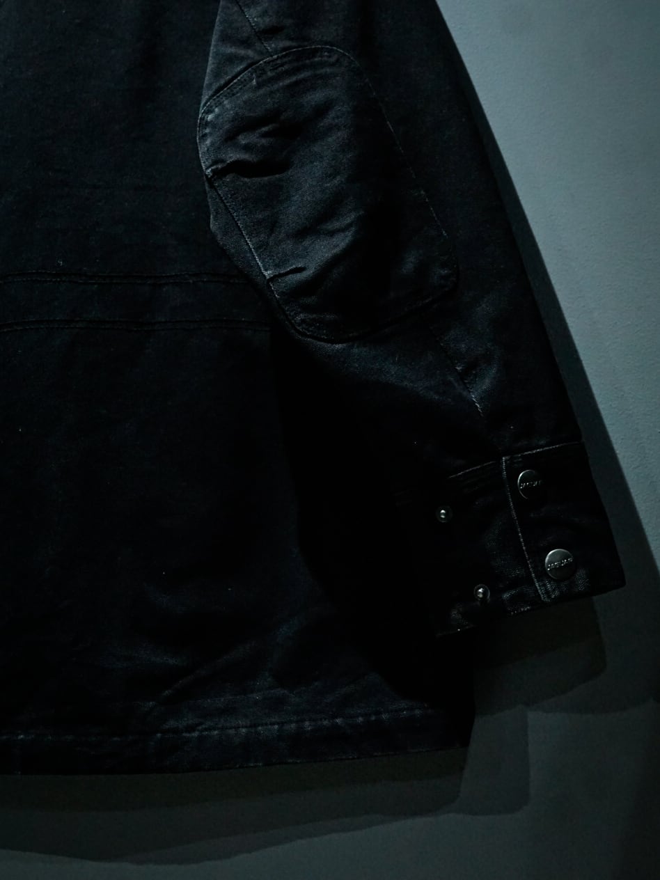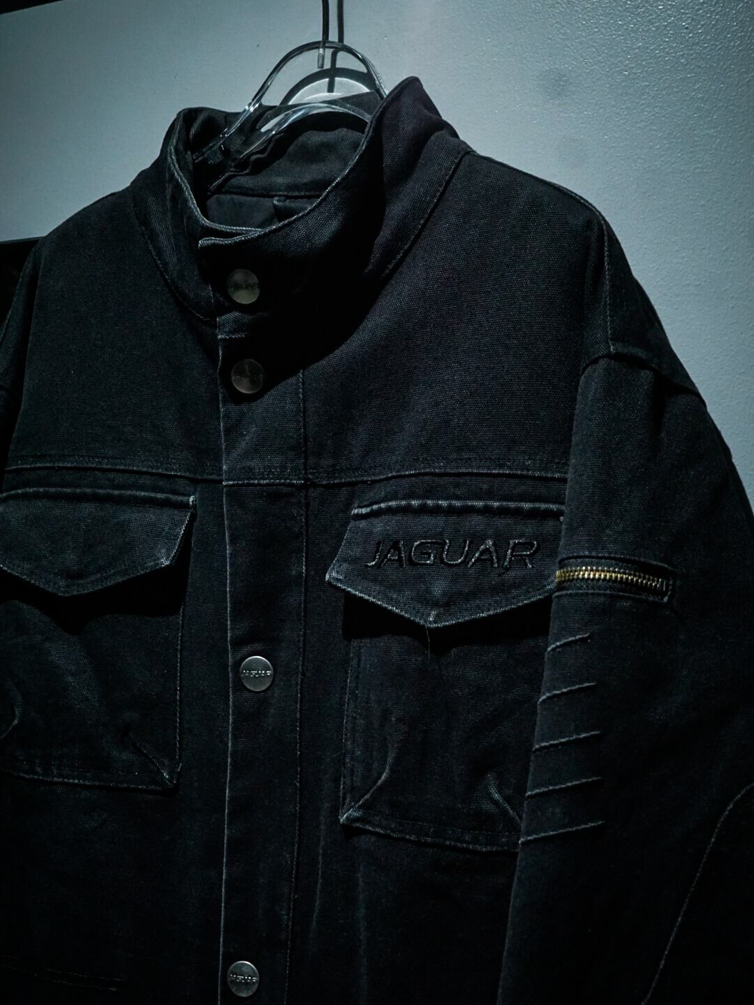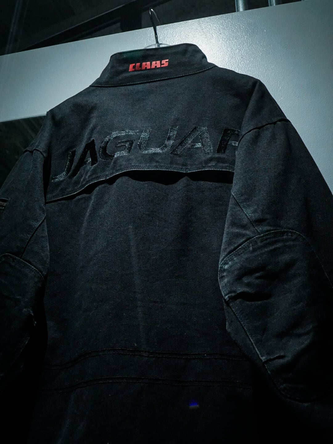 ガシッとしたブラックのダック生地をボディに使用し、ドイツの重機メーカー"CLAAS"の"JAGUAR"の刺繍を施したダックジャケット。