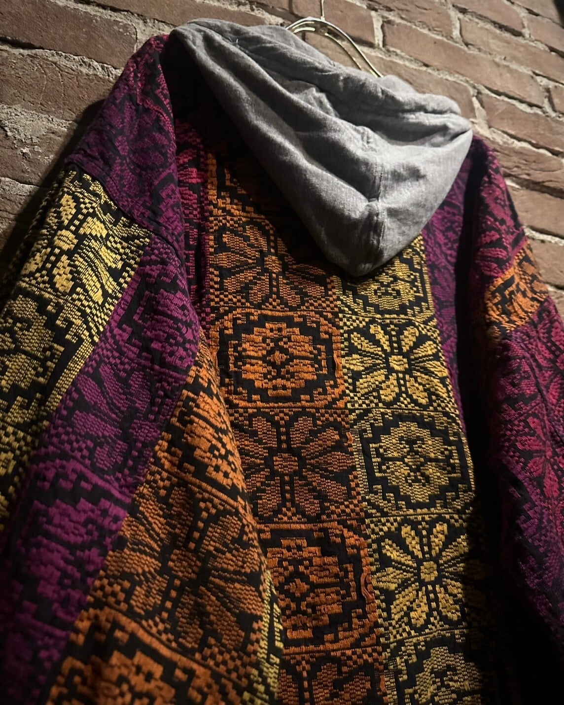 ゴブランやジャガードのジャケットでは見かける事が多いこの手のアイテムですが、フーディ型となると稀少ですね。