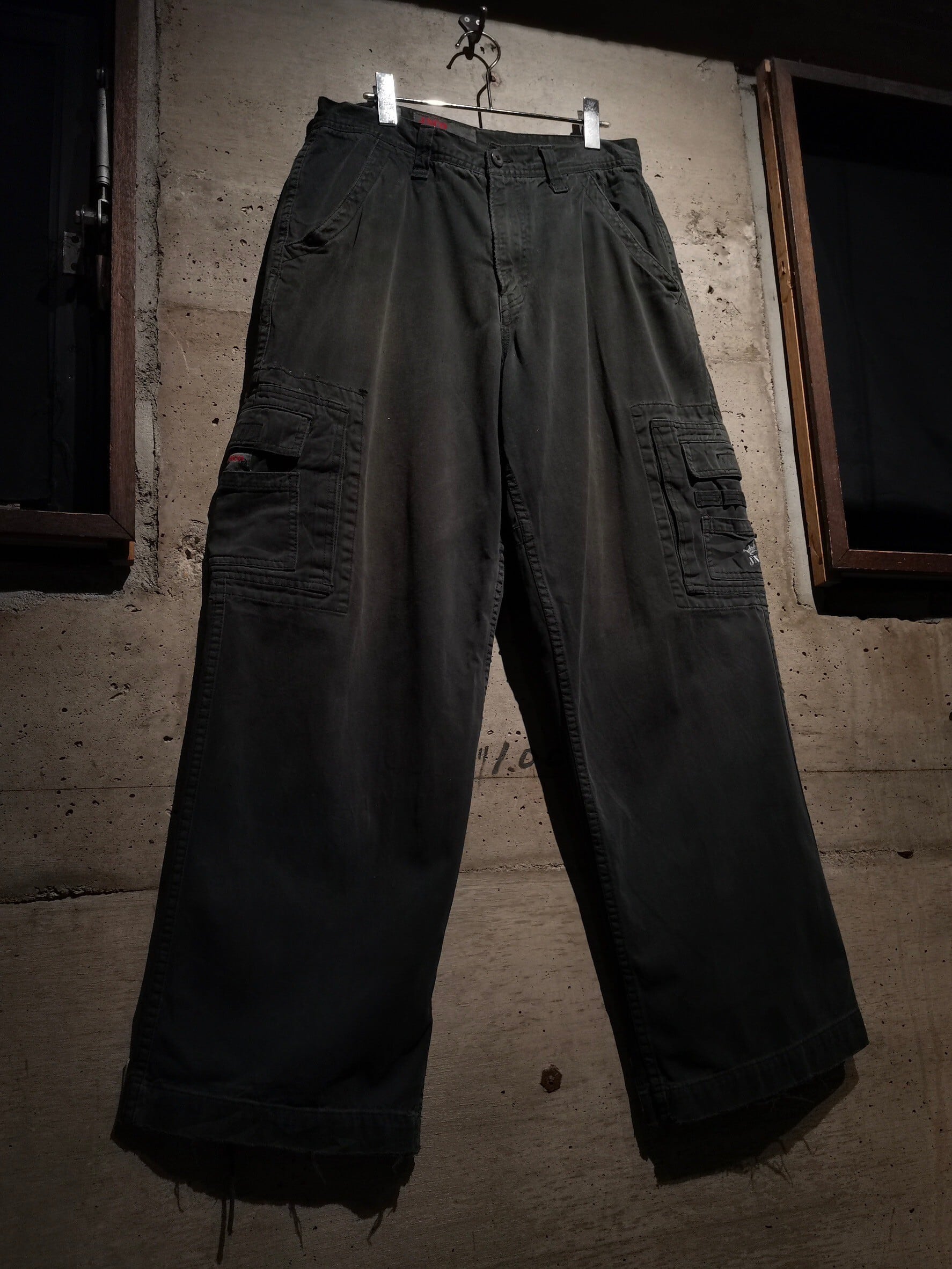 フェードの効いたブラックのボディに、ポケットのギミックを施し、ブランドを象徴するクラウン、ブランドネームの刺繍を左カーゴポケット、バックポケットに刻んだ稀少なカーゴパンツ。