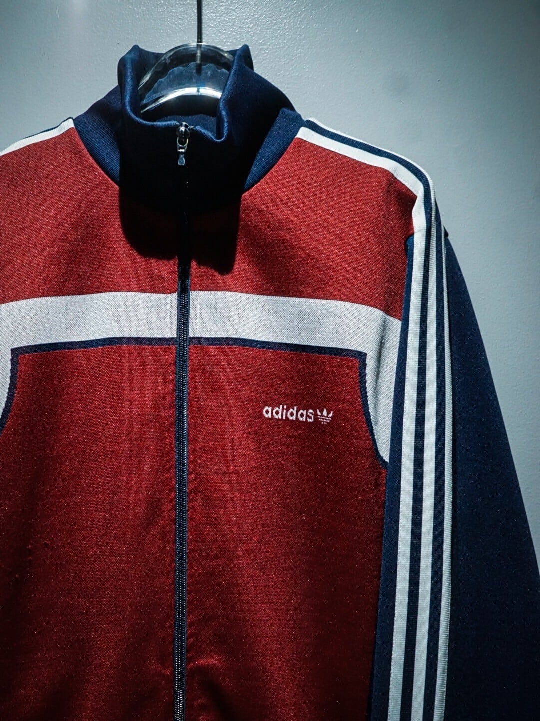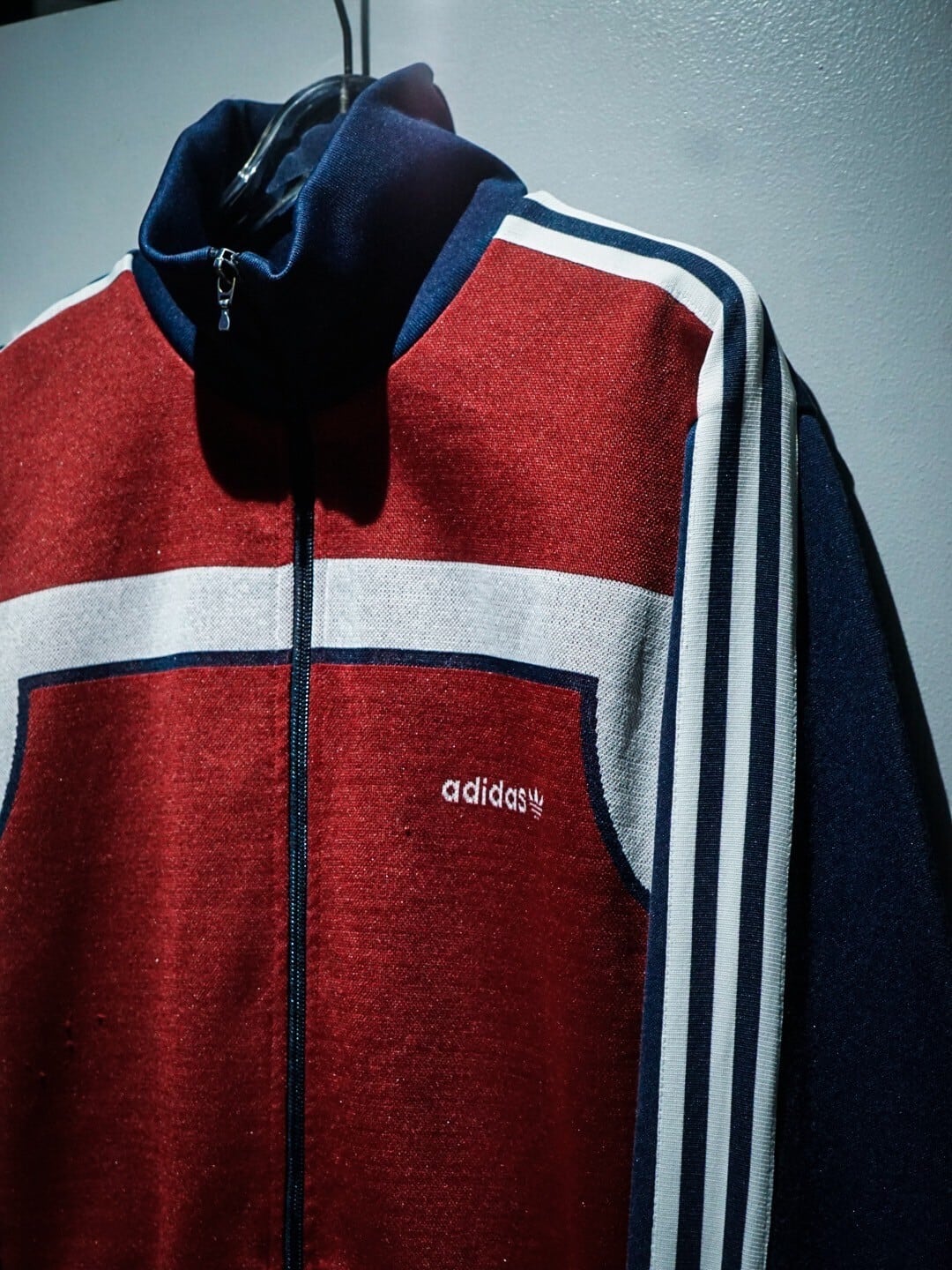 赤、白、ネイビーの落ち着いたトーンのレトロなカラーリングを用いた稀有なトラックジャケット。使用している色もさることながら配色のバランスも素晴らしい…
