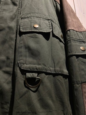 アームにもポケット付き。肩と肘部分にはスエードによってパッチが施された異素材のコントラストによる立体感も持ち合わせた、デザイン性の非常に高い1着。