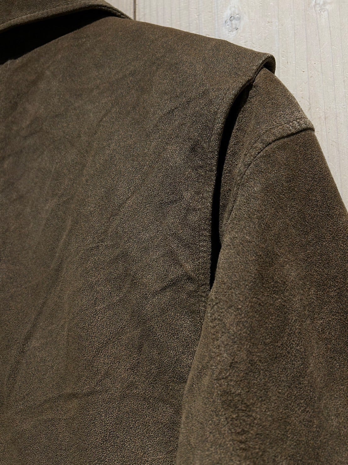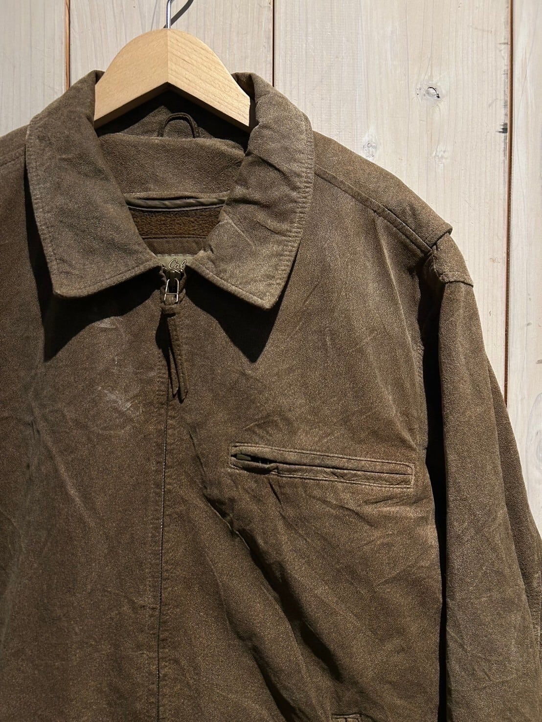 渋い雰囲気を醸し出すブラウンレザーを用いたジップアップレザージャケット。