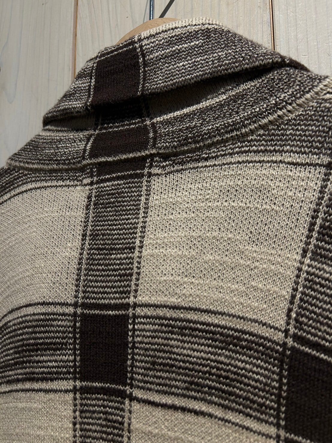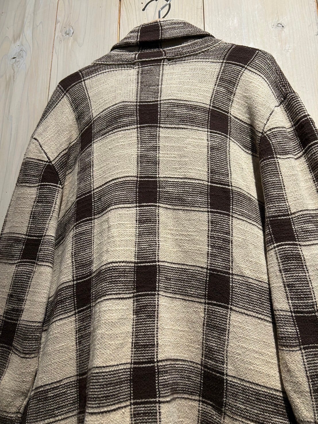 落ち着きのある上品なベージュカラーをベースに、同系色のブラウンカラーでチェック柄を全体に配したコットン羽織りジャケット。
