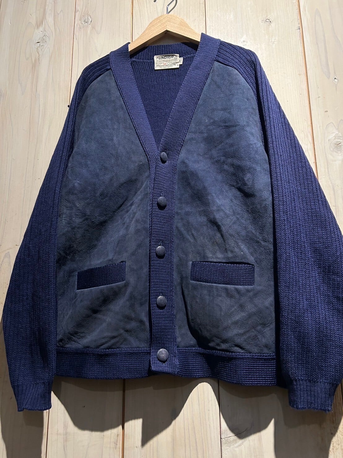 代名詞の3Dニットをはじめとし、市場でも著しい高騰を見せる"ツンドラ"。今回ご紹介させていただくのは、柔らかな青色のニットボディの前身頃に滑らかなスエードレザーを切り替えたヴィンテージのカーディガン。