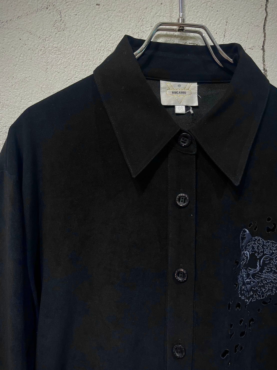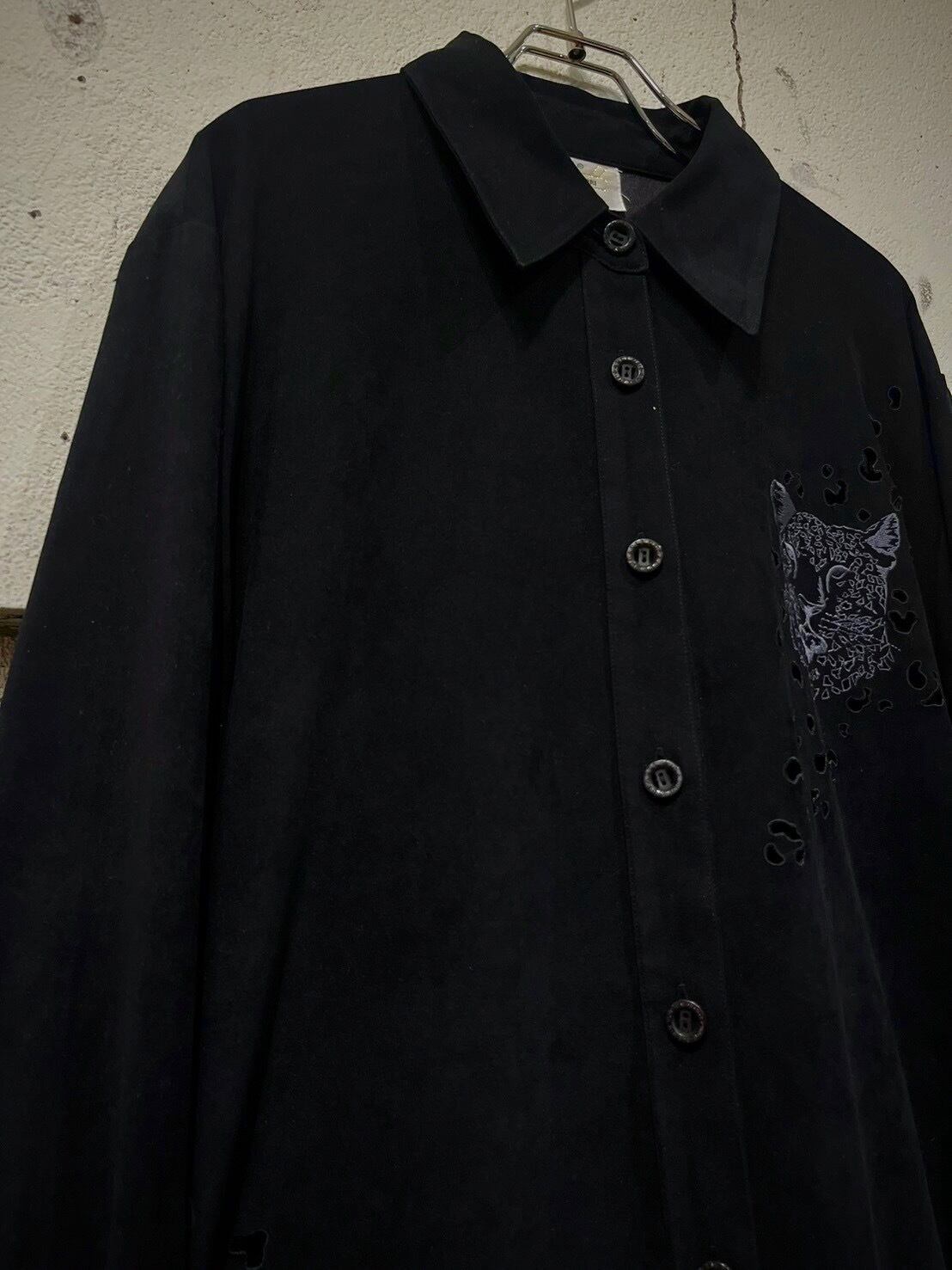 タフかつコシのあるツイル織りのボディに、左胸にヒョウを刺繍で刻んだシャツジャケット。