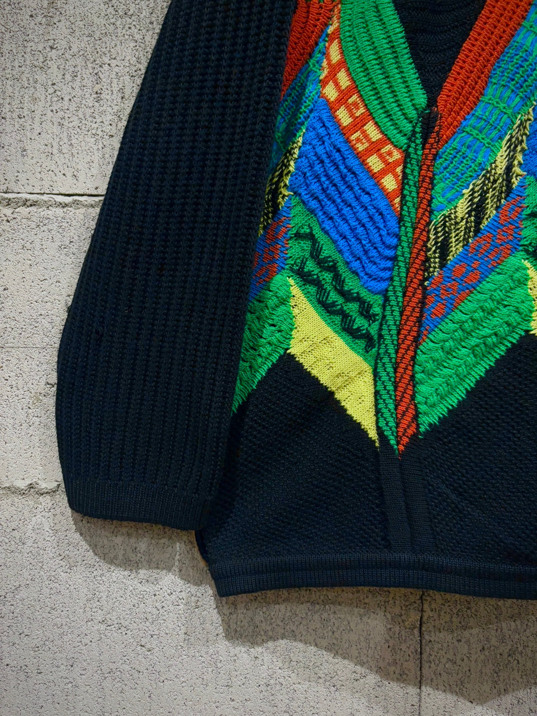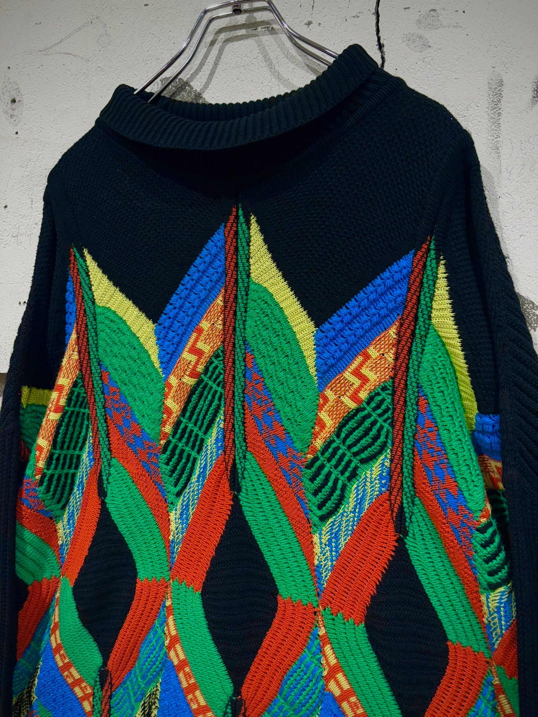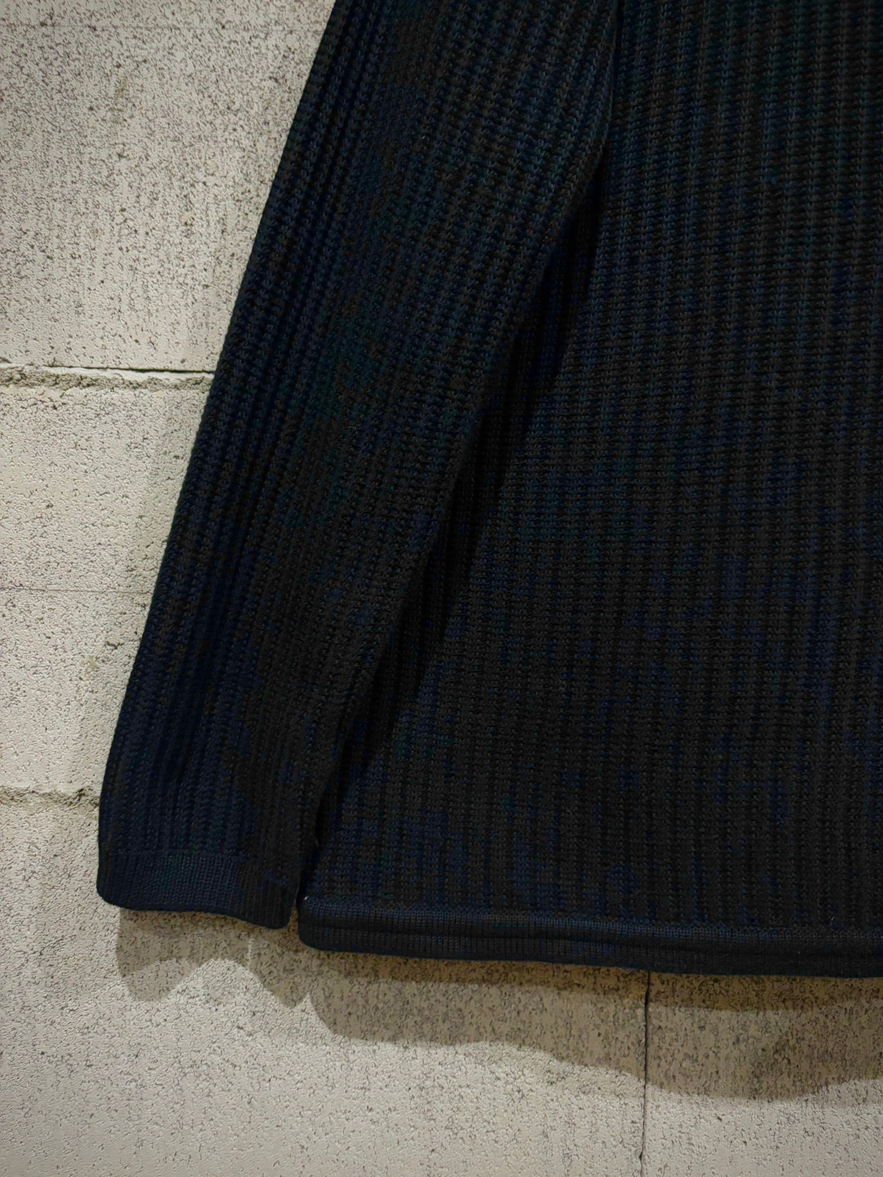 店頭でも引き続きバリエーション豊富に大量展開中、及び大好評を頂いておりますニットアイテムより、稀有なデザインが施された1着をご紹介致します。