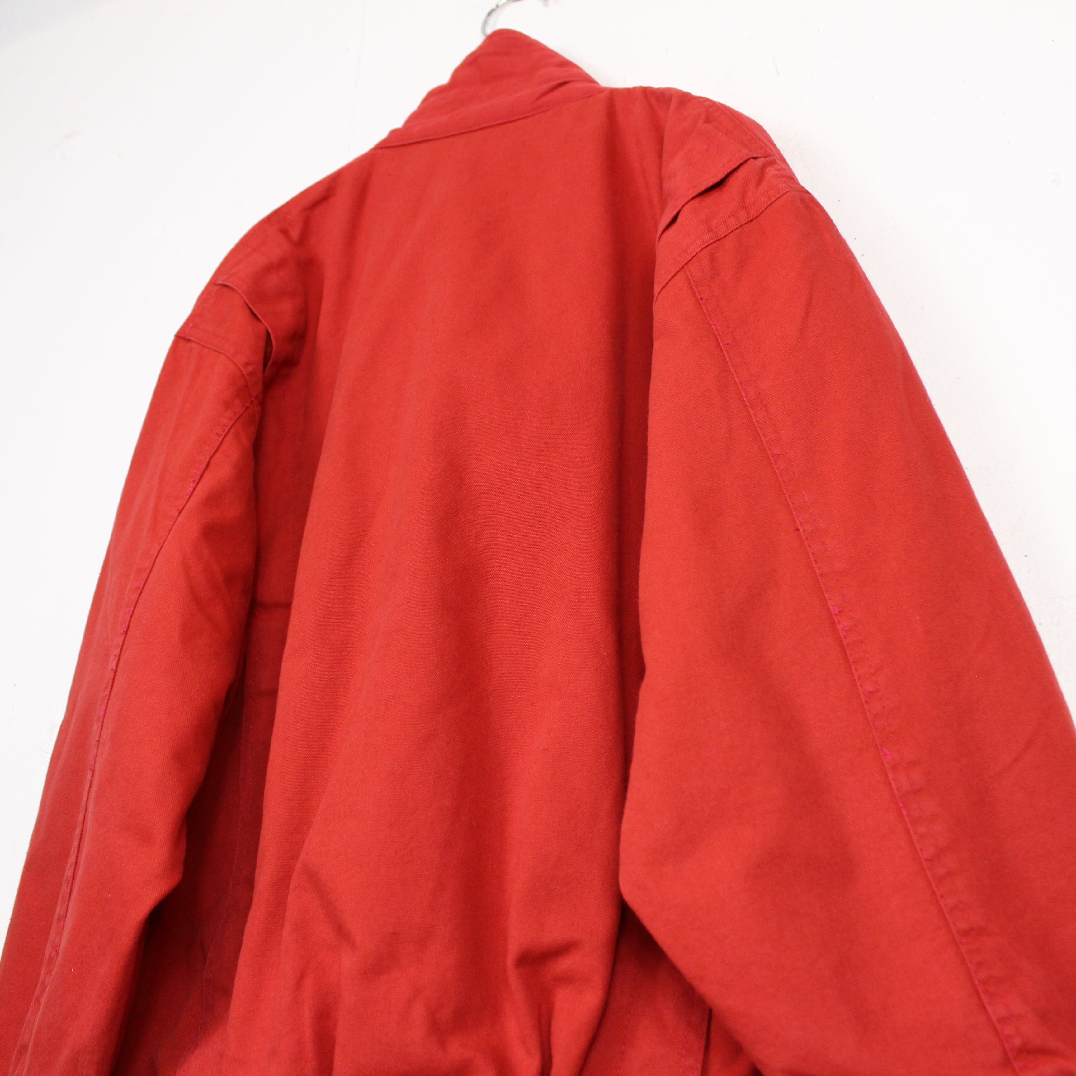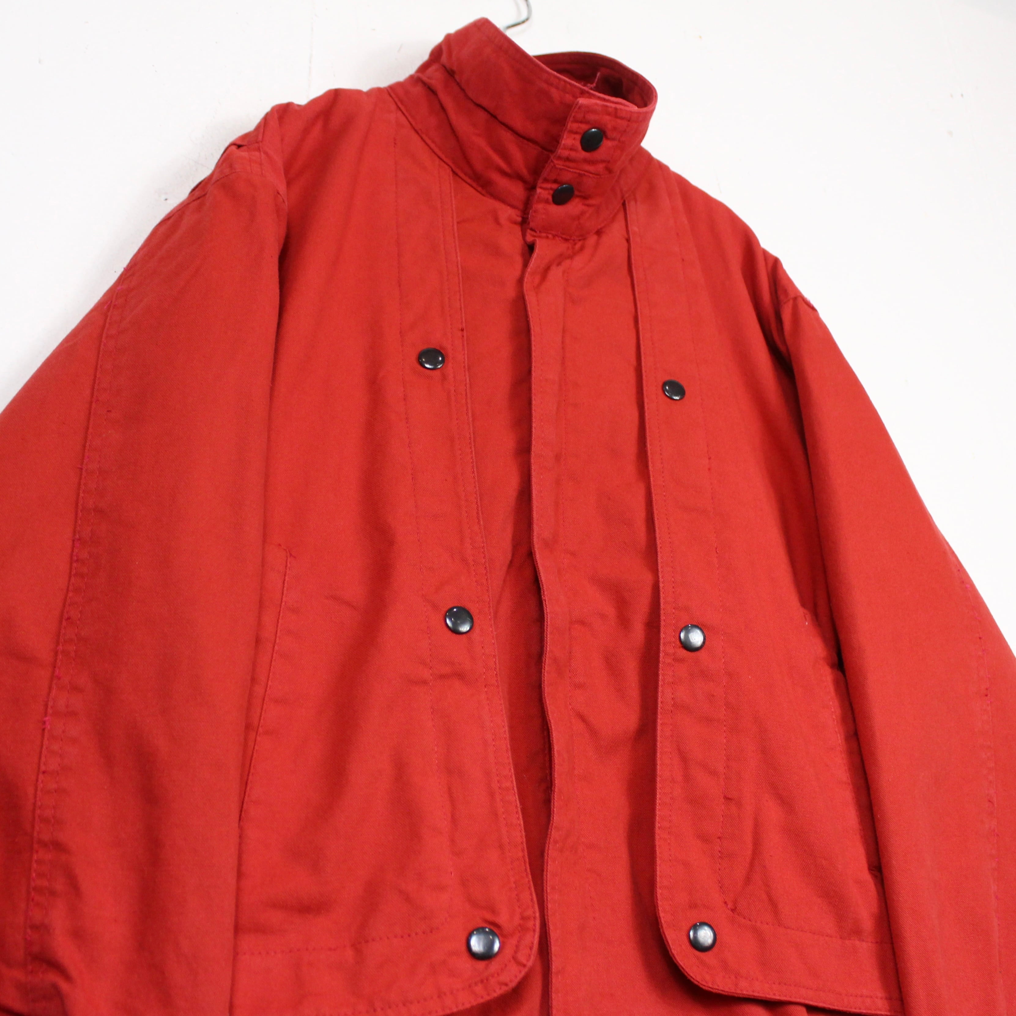 ガシッとタフな、真紅のダック生地を用いたブルゾンジャケット。