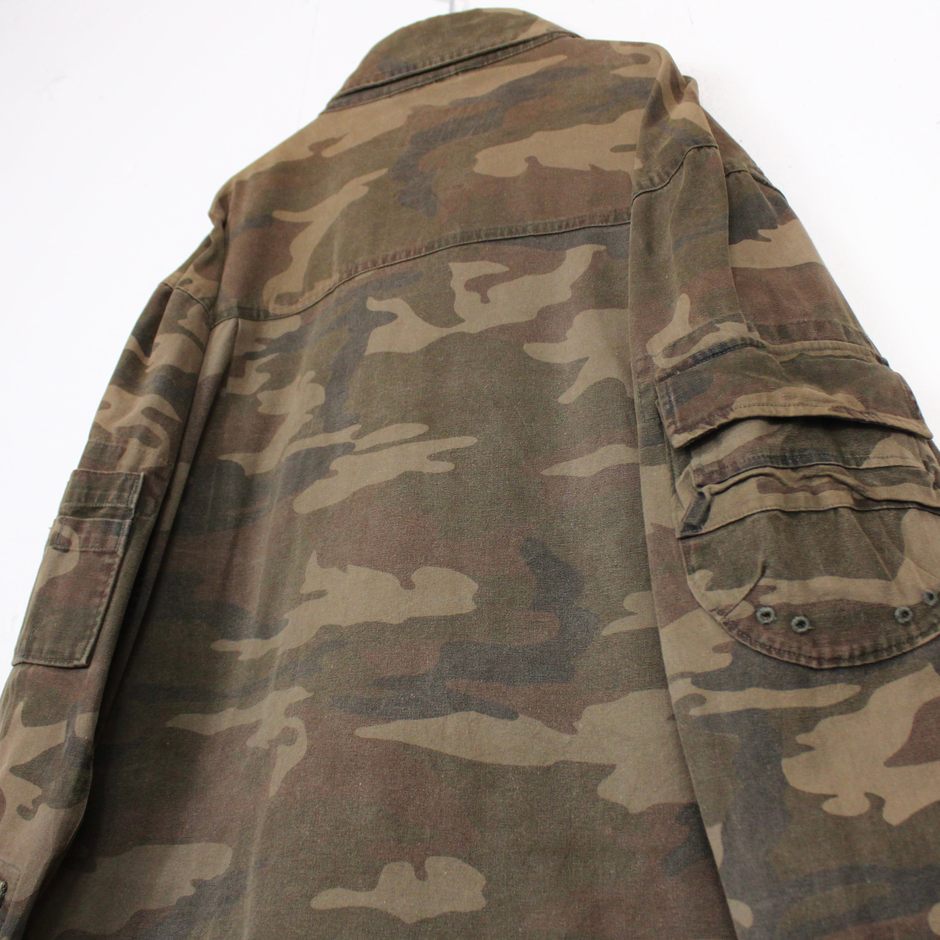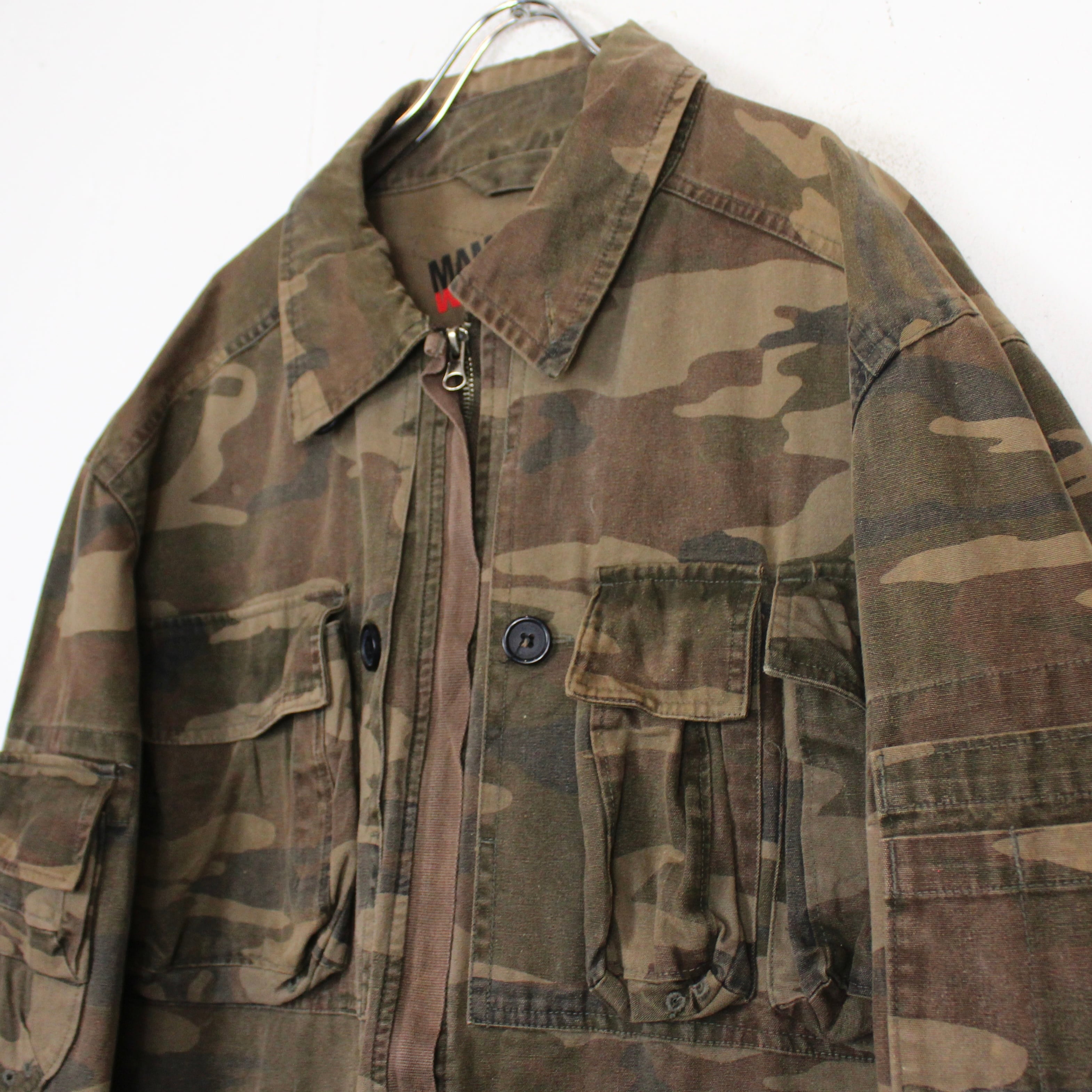 タフなダック地を用いたボディに、ウッドランドカモを載せた、ポケットのギミック盛り沢山のジャケット。