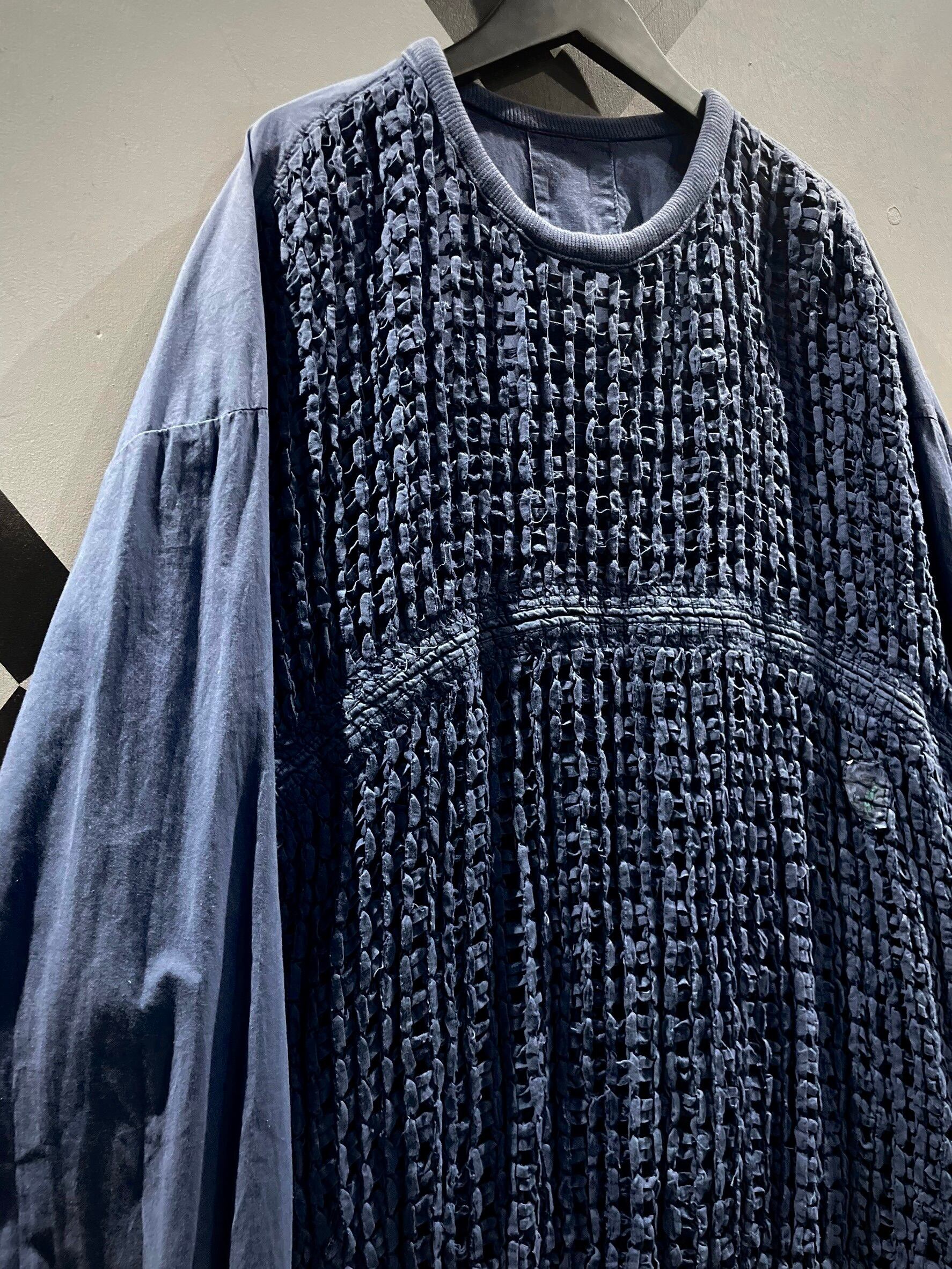 サラリとドライな質感のコットンを用いて、前身頃に編みのデザインを切り替えた、斬新かつモードなデザインが光るプルオーバー。