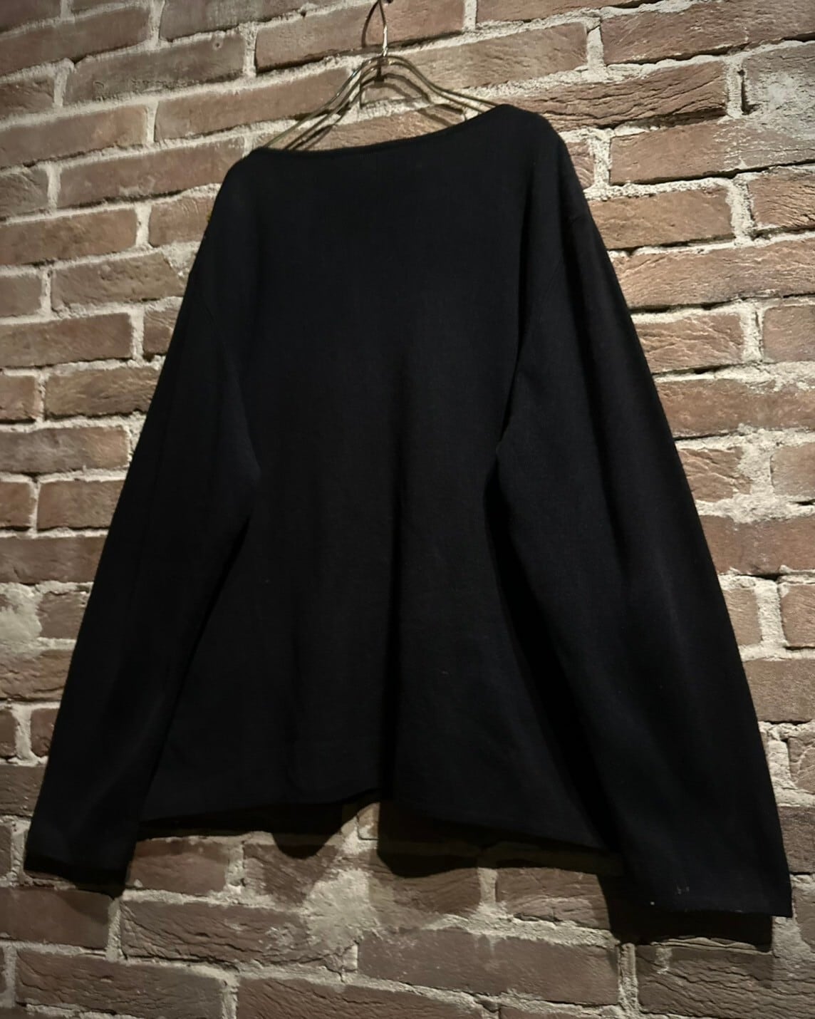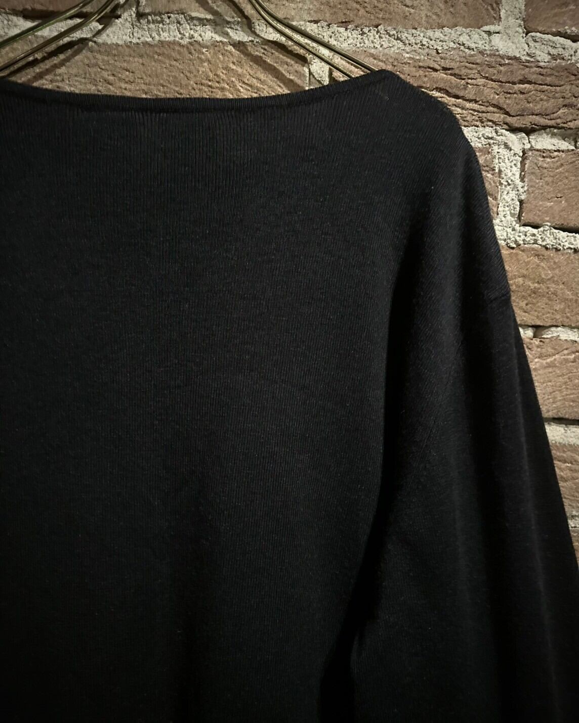 無造作に載せられたラインのデザインはブラックのボディによく映え、ニットの中でも唯一無二感のある仕上がりに。