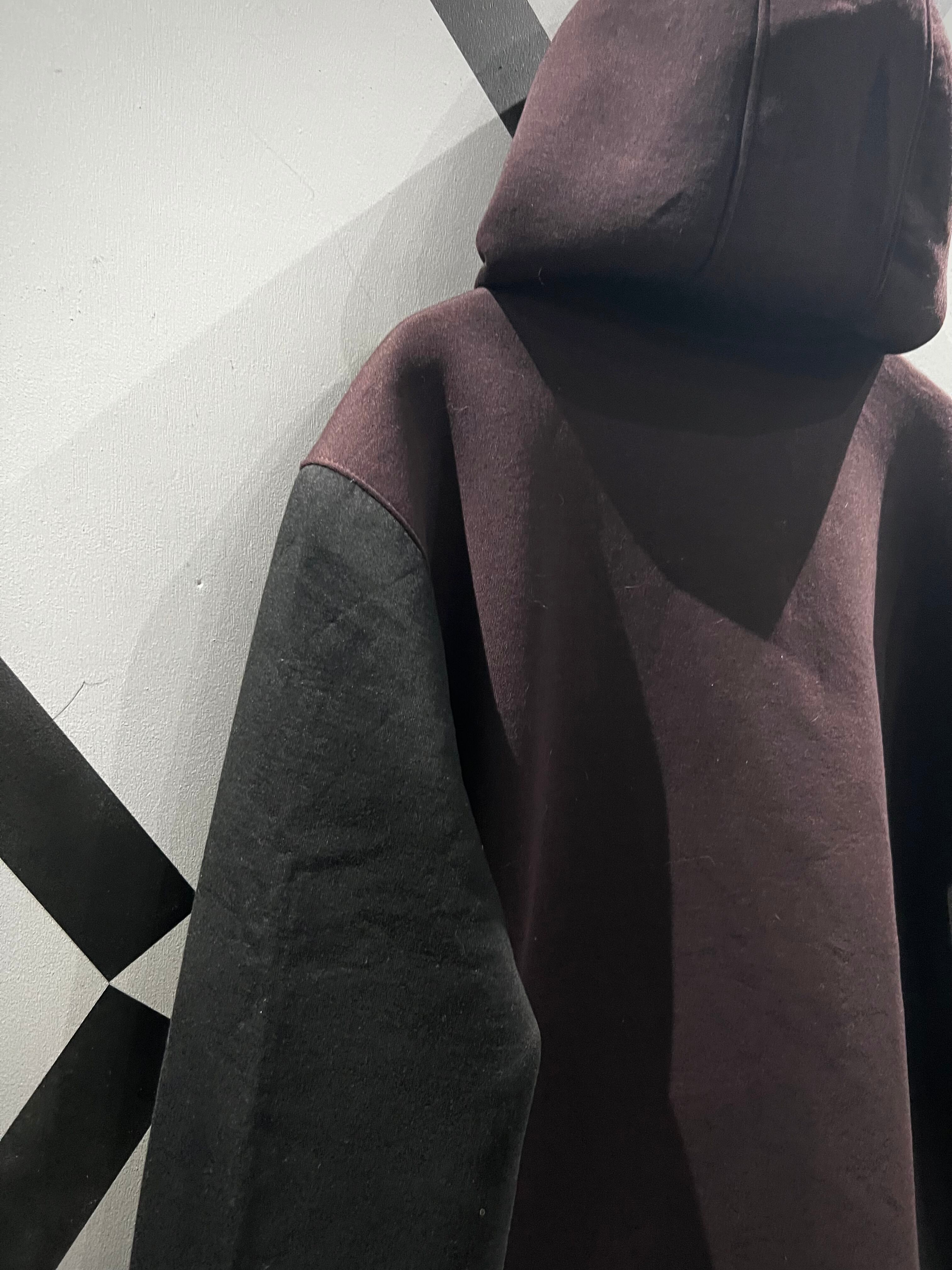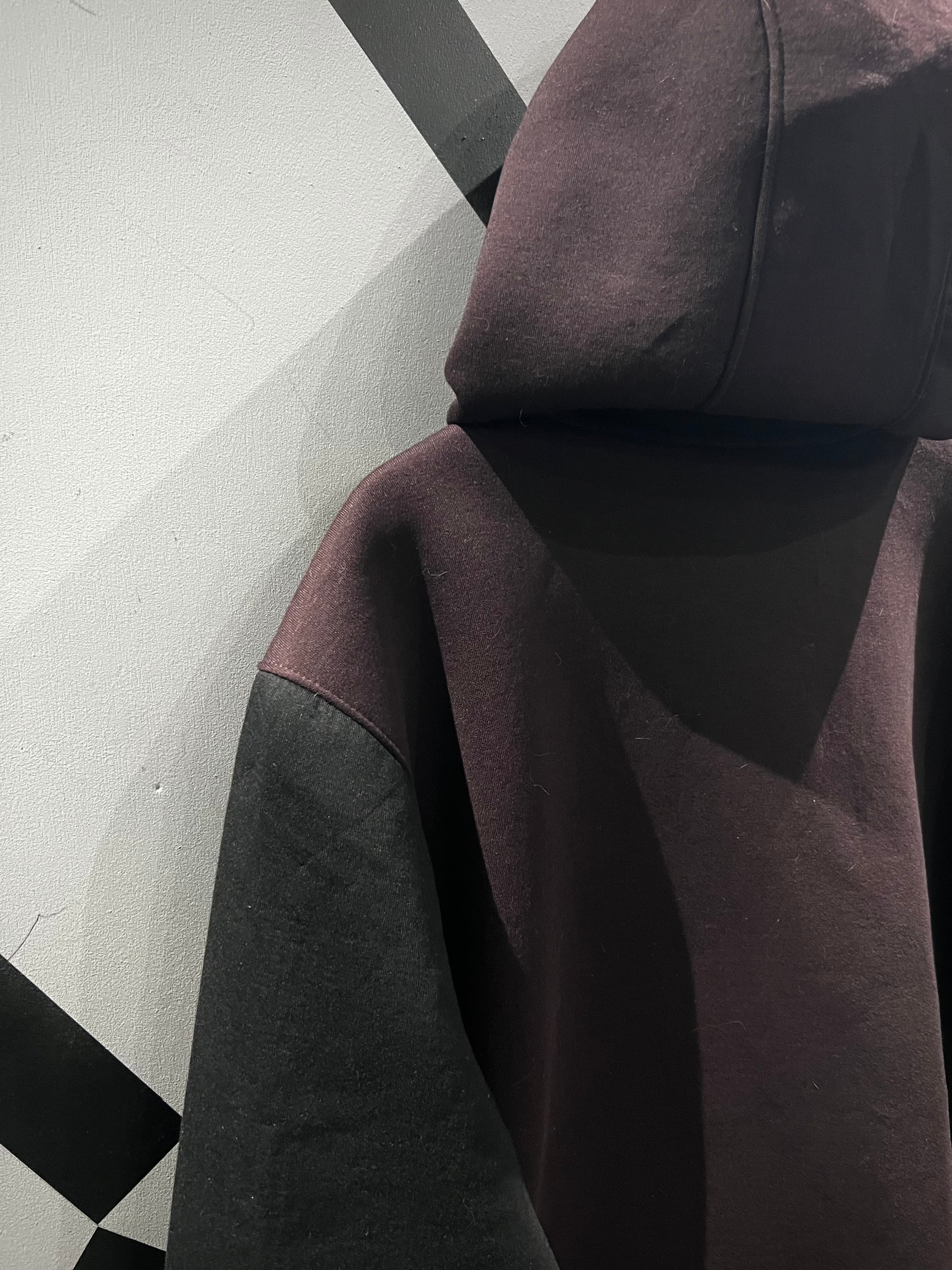 肉感のあるボディを黒×バーガンディで切り替え、ジップポケットを装備。シンプルなデザインかつ高い機能性に服好きの心が射抜かれますね、、、
