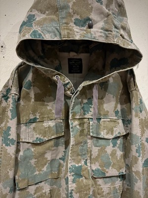 ガシッとタフなコットンを用いて、東ドイツ軍で用いられていたカモ柄を載せたフーディジャケット。