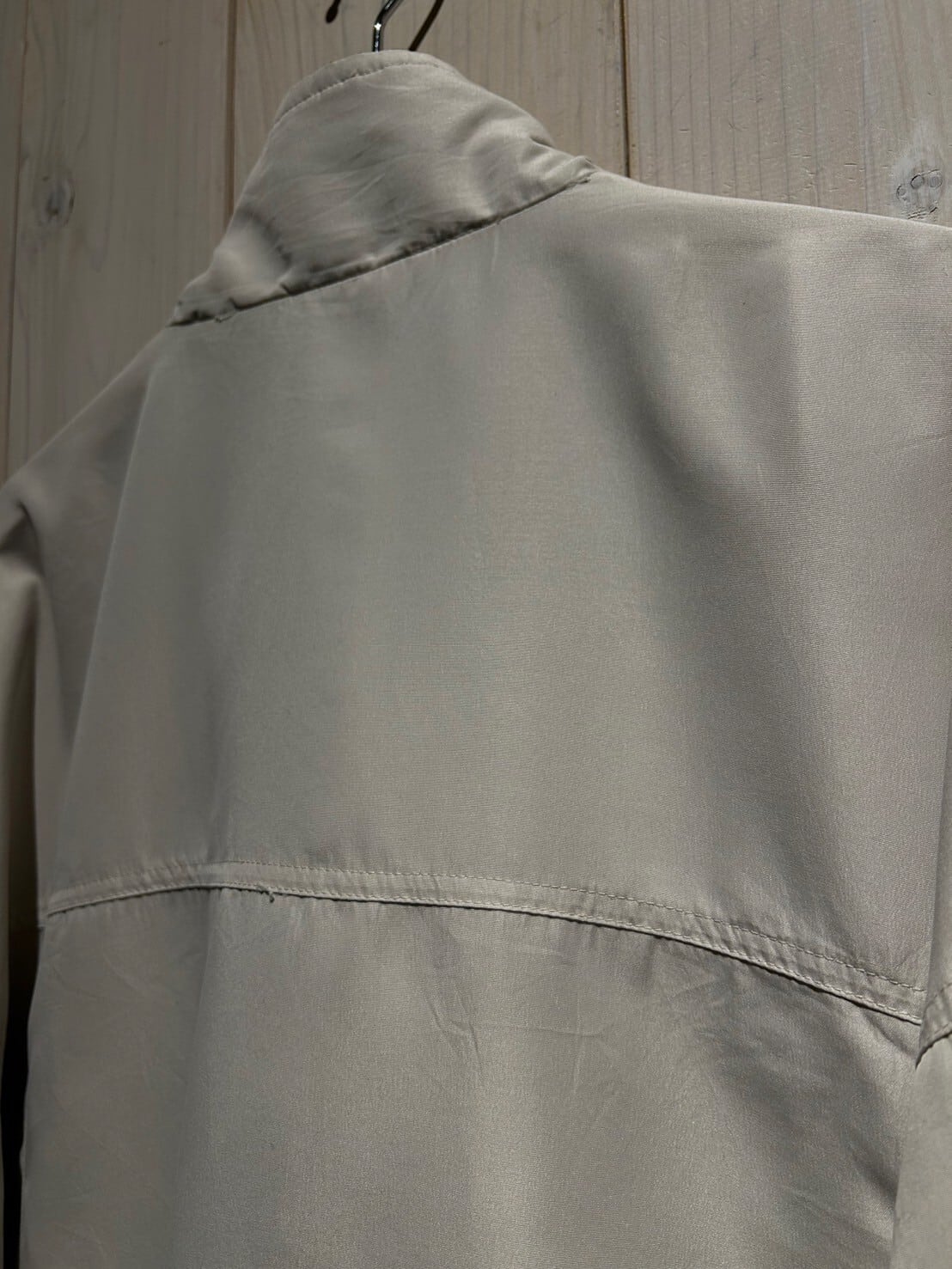 滑らかなオフホワイトのナイロンを用いたボディに、左胸にはパフォーマンスロゴを刺繍で刻み、ジップポケットにフロントは比翼仕立てでシンプルでミニマルに仕上げられた1着。