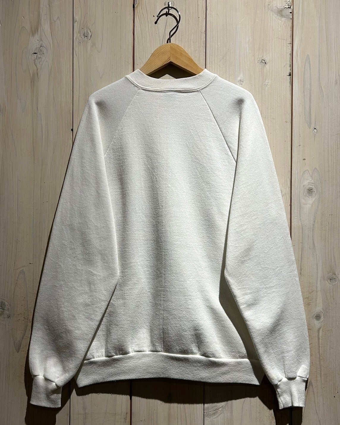 1982年のコピーライト入りかつ、USA製。ラグランスリーブの程よくゆとりを持たせたサイジングでレイヤードシーンには大活躍間違いなし。柔らかい素材から生み出される肩の落ち感も美しく、襟、袖、裾の各所に効かせたリブがより洗練された玄人好みのシルエットも◎