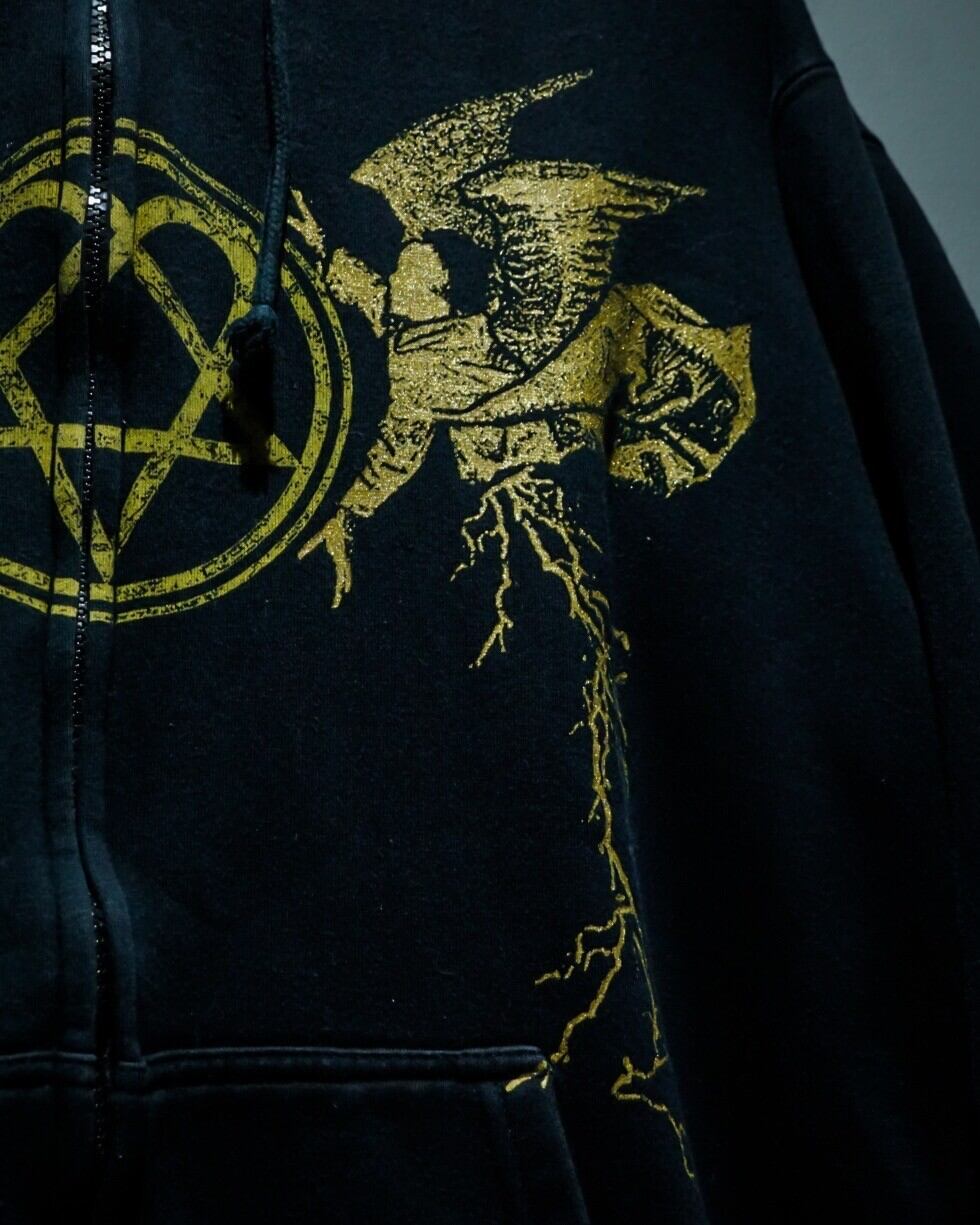 全体としてタイトなスッキリとしたサイジング。サイズ感にもメタルの息吹を感じます。バンドTシャツに比べてバイイングも難しく、その中でもジップアップフーディとなるとかなり稀少個体かと。