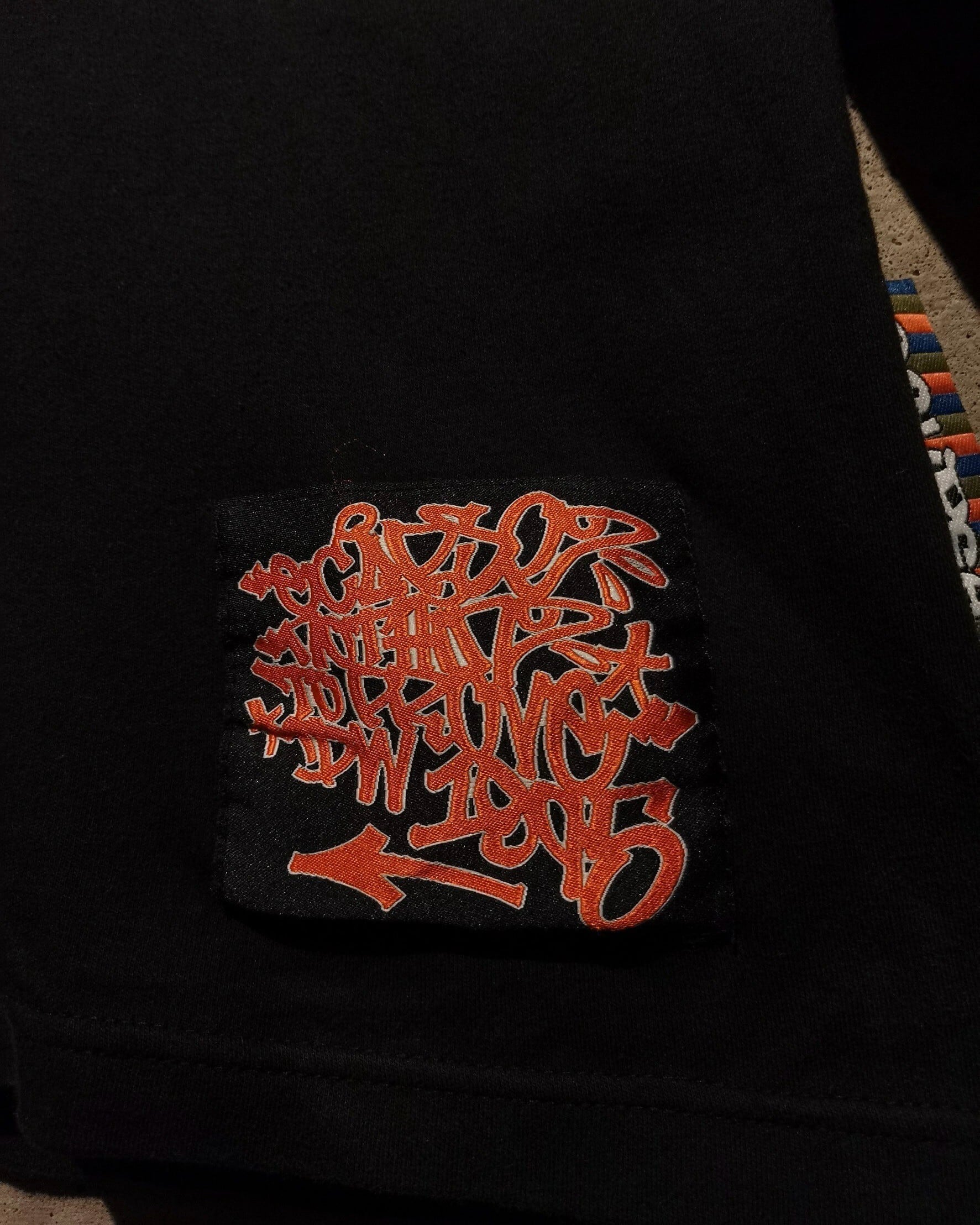 フロントに加え、袖にはタギング文字のグラフィックを載せた、ストリートらしさを全面に押し出したデザインが最高にイケてますね。