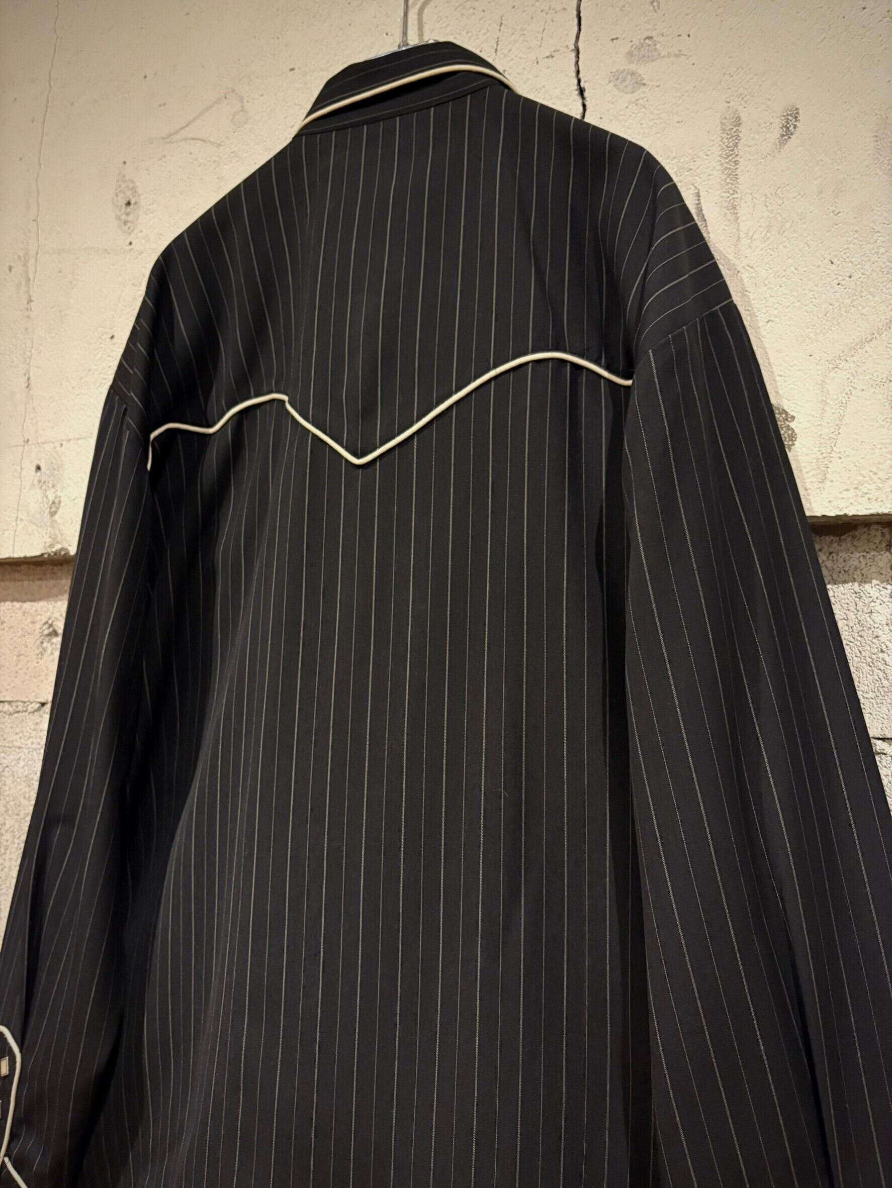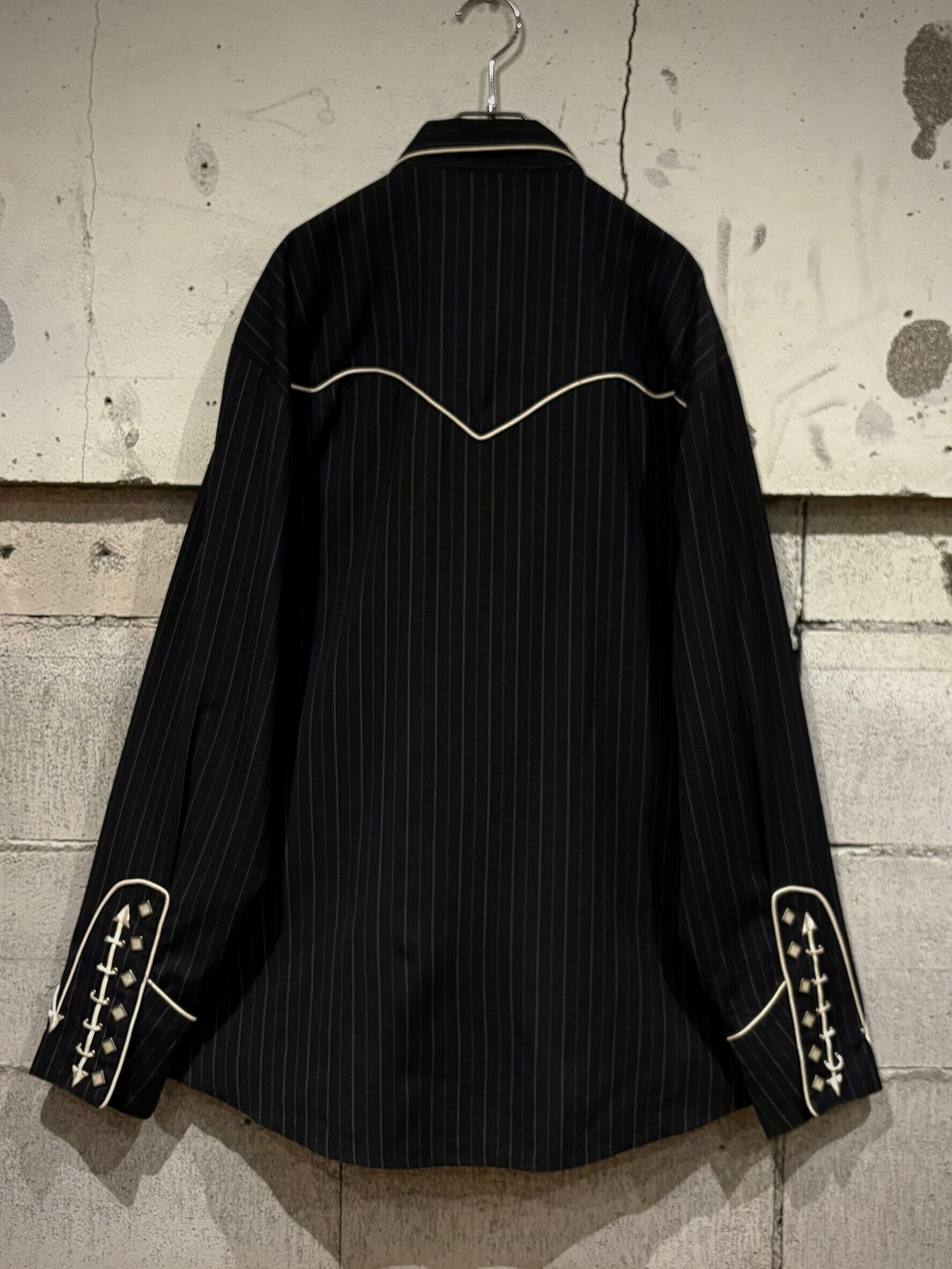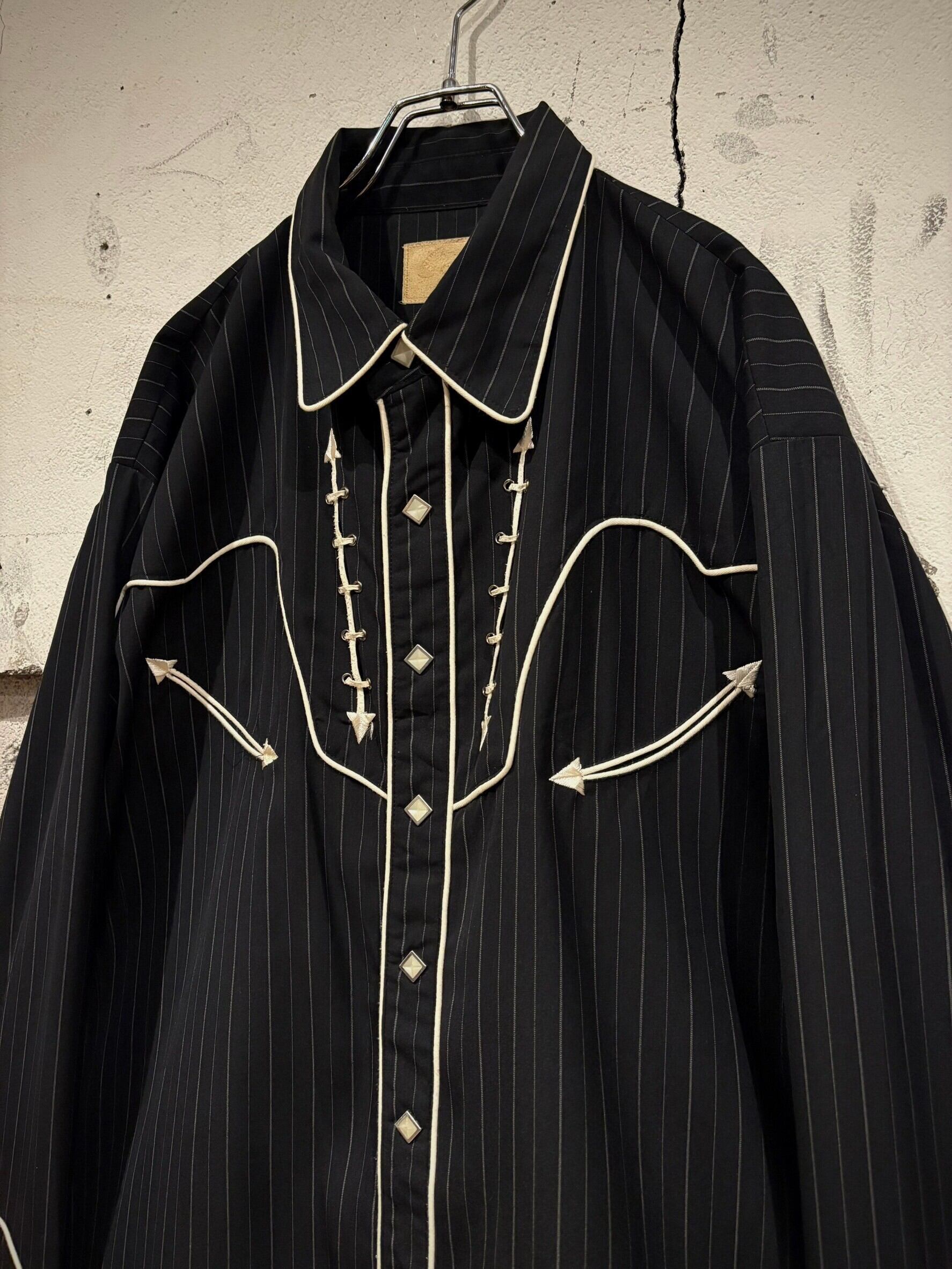 ブラックのボディをベースに白のストライプを張り巡らせ、ウエスタンらしいヨークやスマイルポケットを取り付けた1着。
