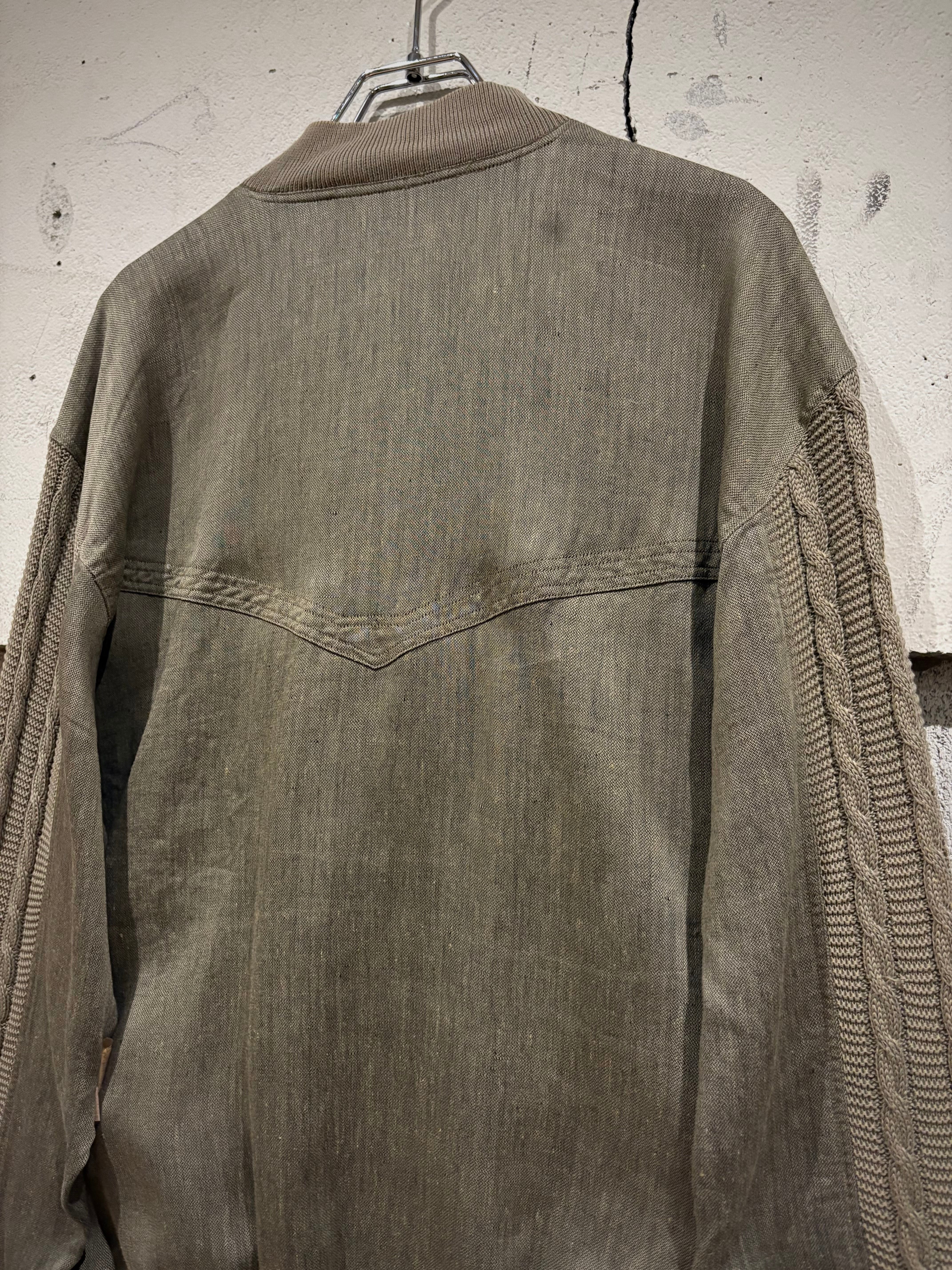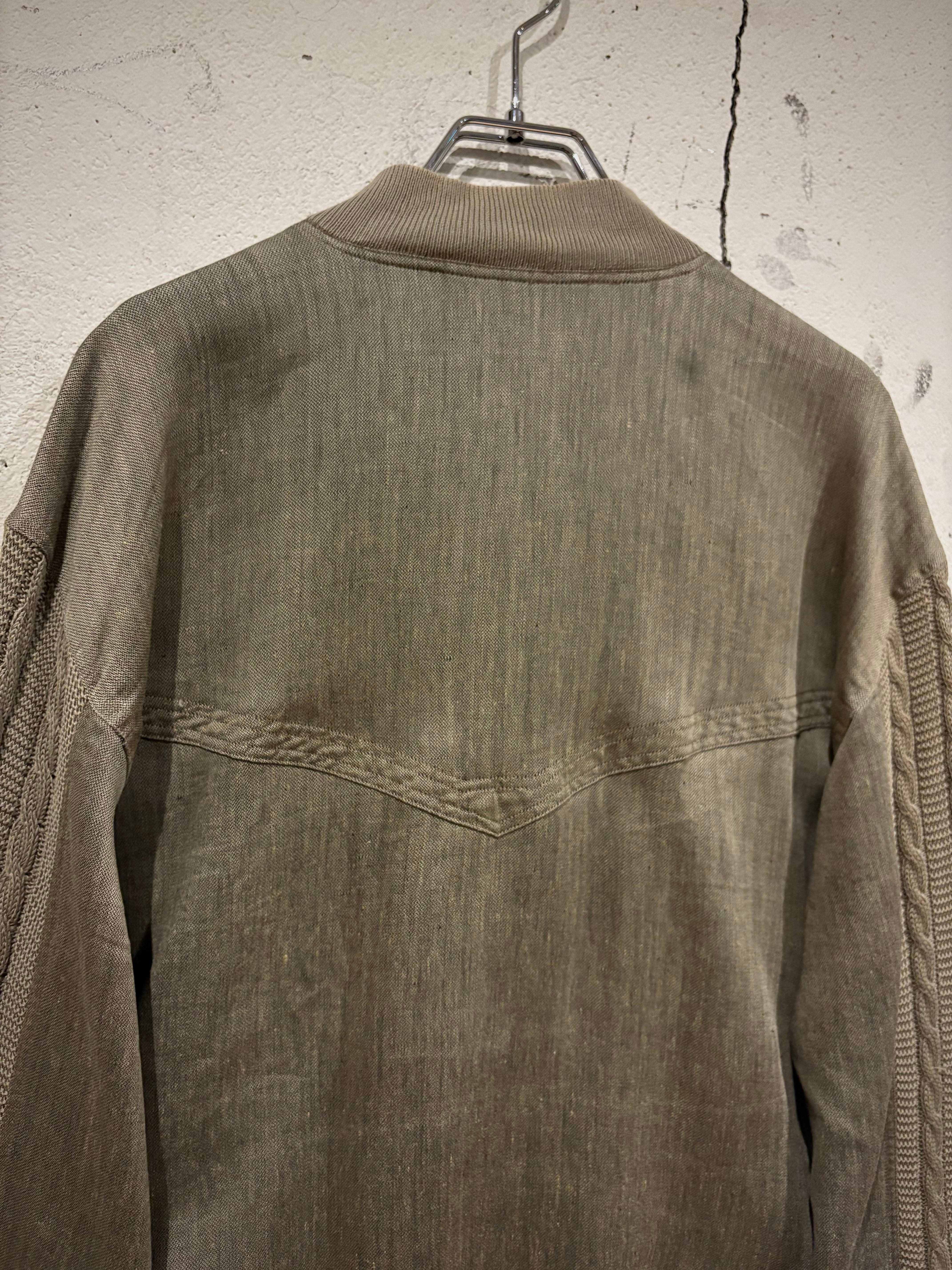 ハリのある上質なリネンを用いた、ユーロヴィンテージらしいデザインや素材使いが光るイタリーメイドのブルゾンジャケット。アームに施されたケーブルニットの立体感も良いアクセントに。