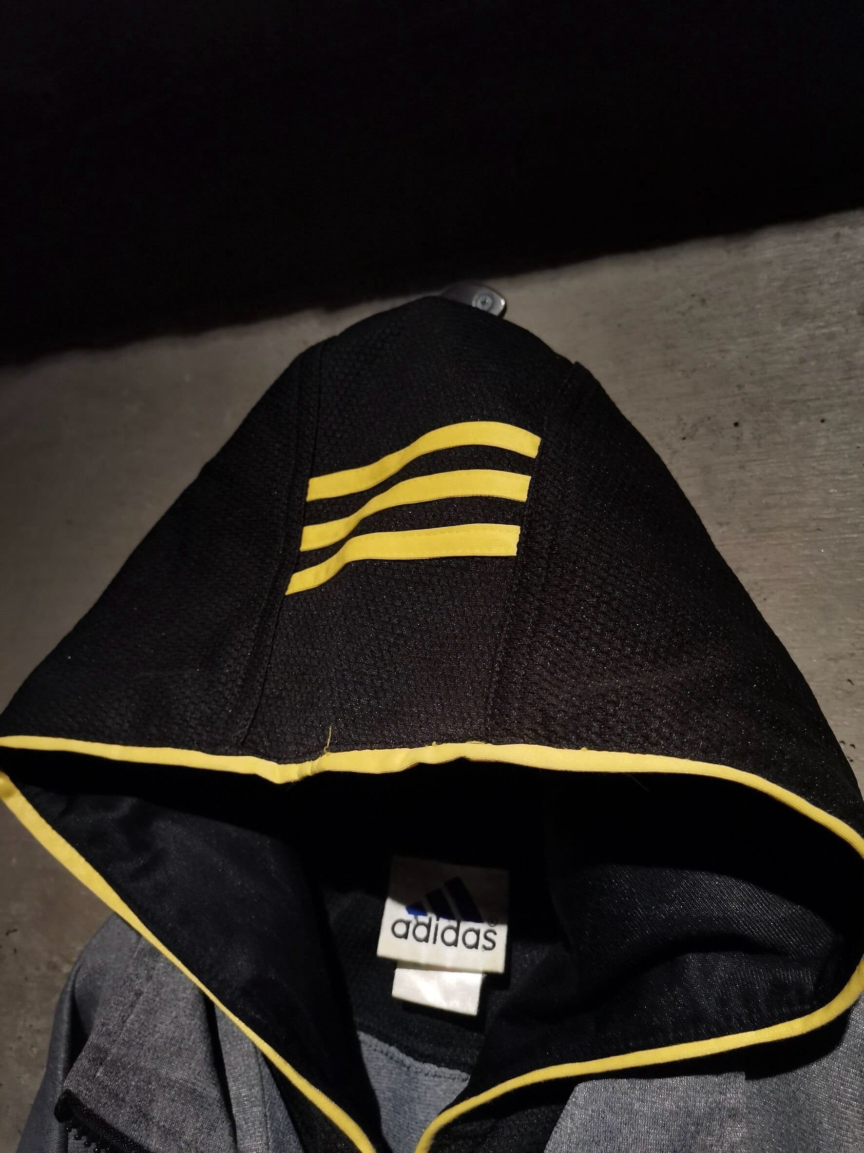 サラッとした素材感のグレーのボディをベースに、黄色のパイピングによる切り替えやブラックのメッシュ素材を随所に切り替えたトラックジャケット。