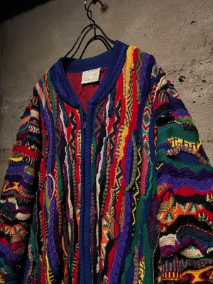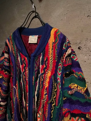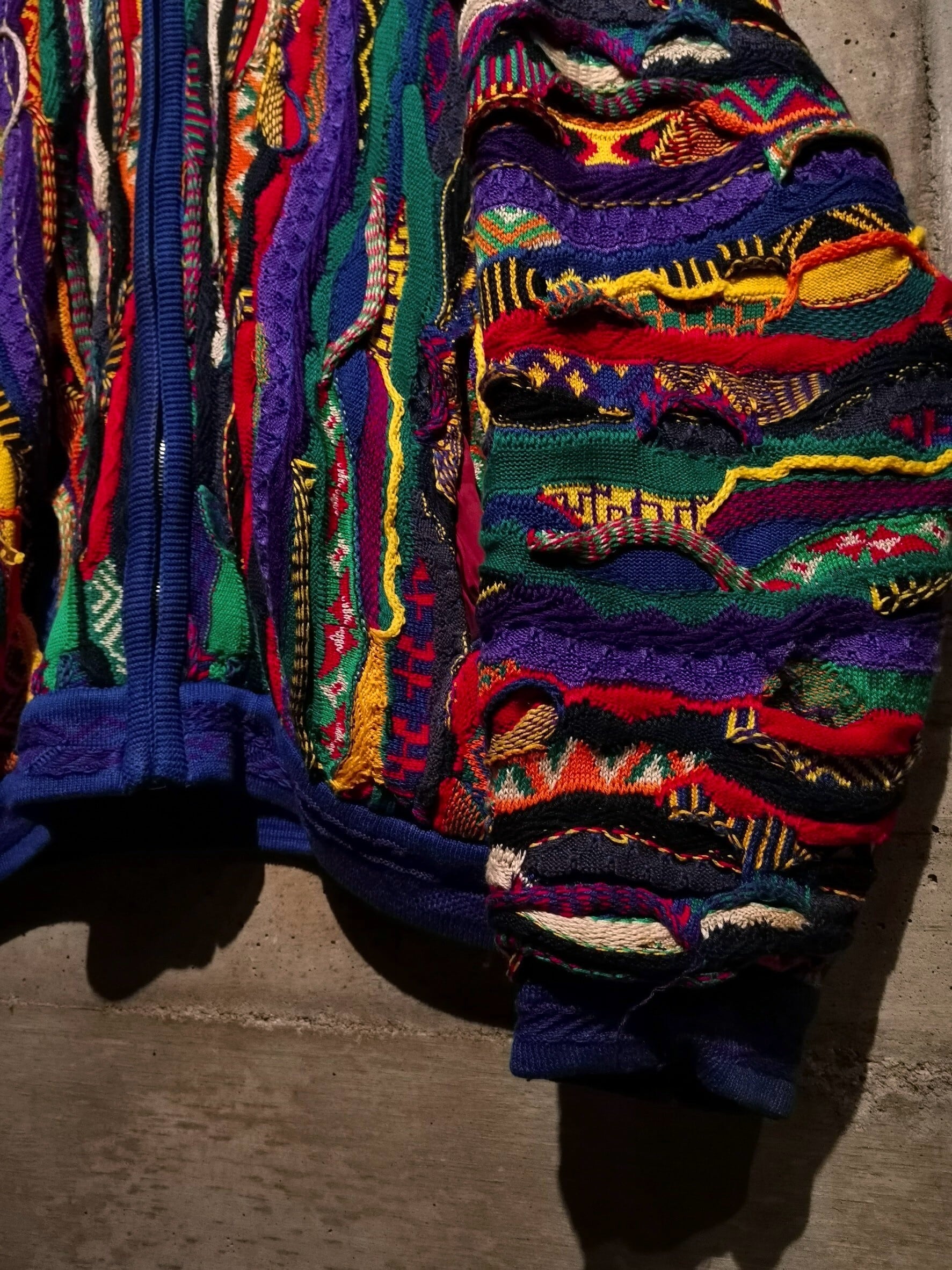 こちらは"COOGI"のなかでも非常に珍しいニットジャケット。緻密で繊細なニッティングによって生まれたうねりの効いた3Dニットを用い、ブルゾン型に落とし込んだ超スペシャルな一品です。