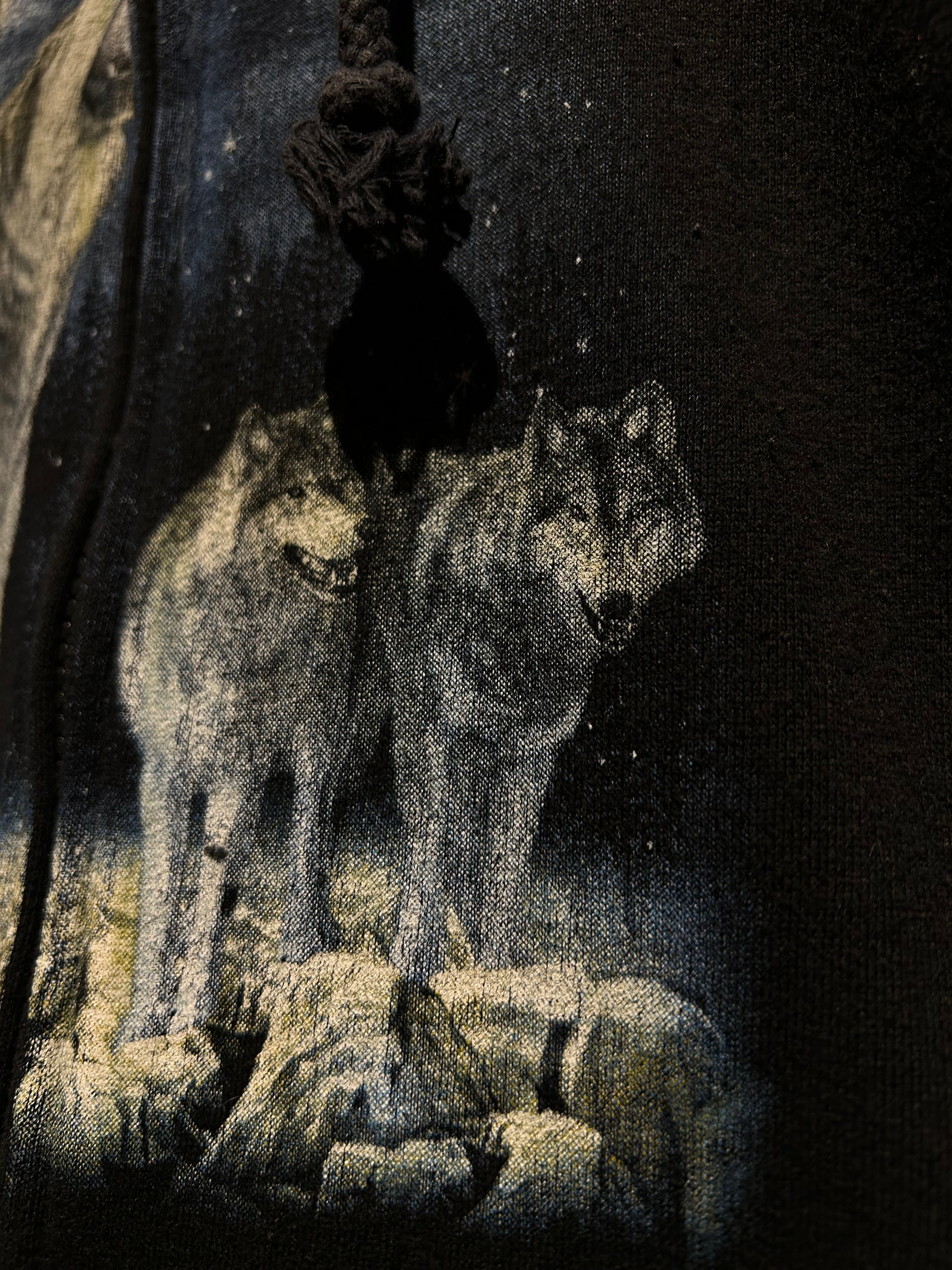 店頭並びにONLINEでも大好評をいただいており、当店スタッフも大好物のジャンルである"オオカミモノ"より、ジップアップフーディの逸品をご紹介致します。