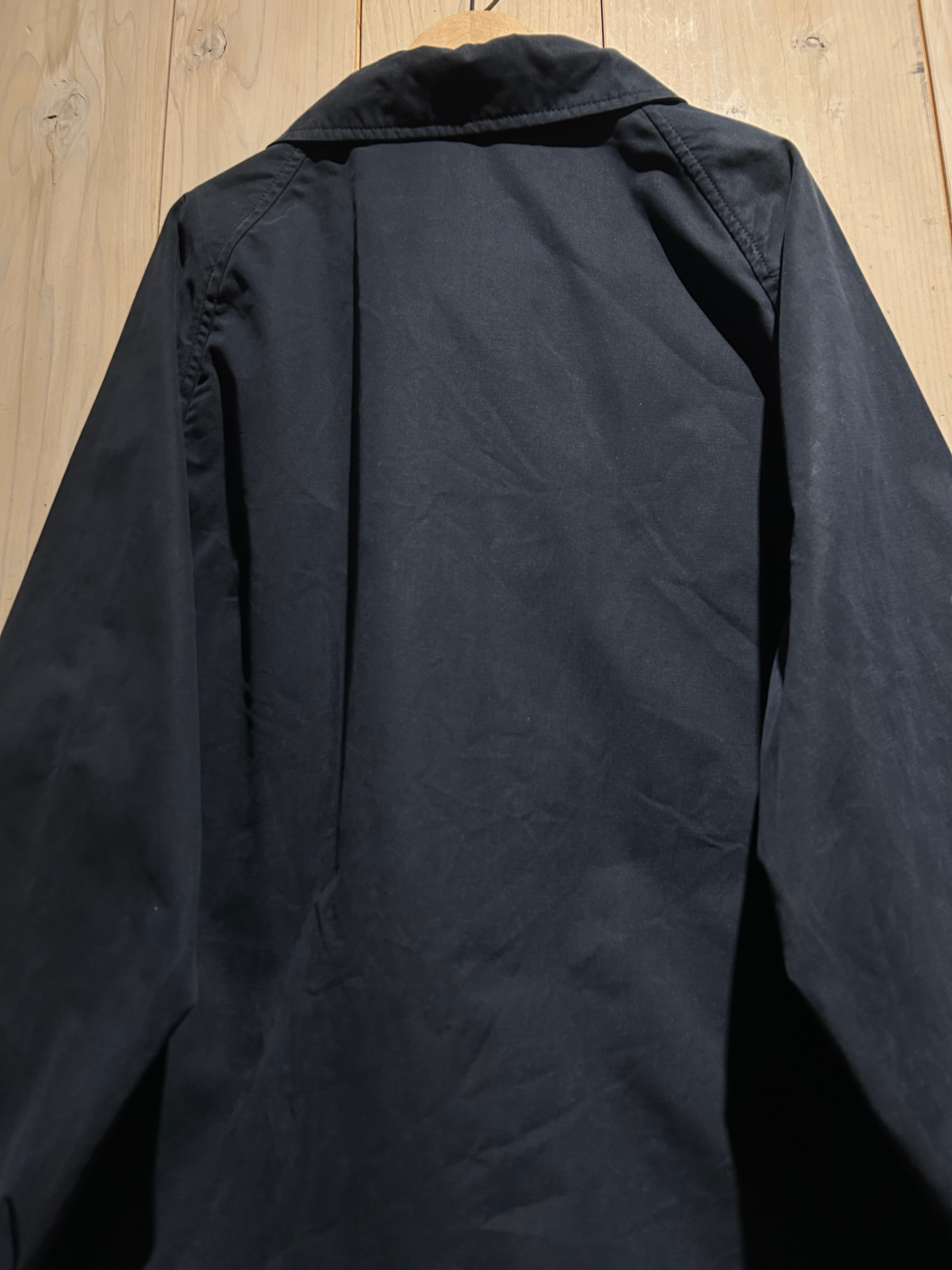 パリッとハリのあるネイビーのボディに、重厚感のあるファイアーマンバックルを載せたカバーオールジャケット。