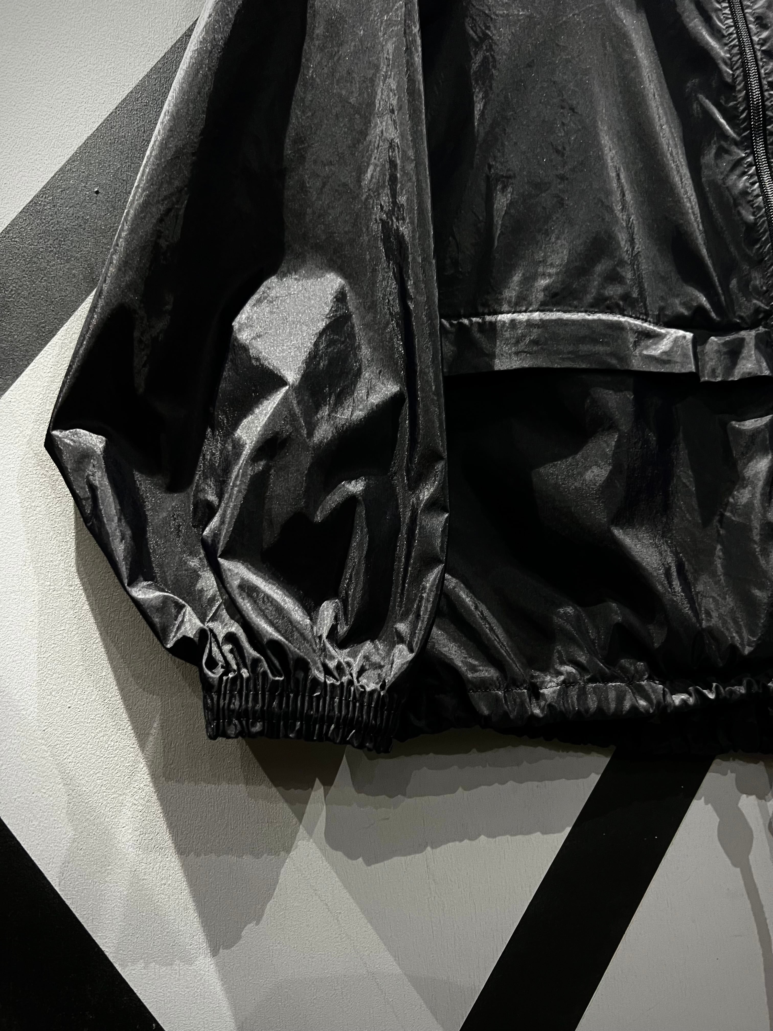 ポリ素材を用いた事で着心地も非常に軽く、ジップアップタイプのフロントにフード付きの仕様。袖、裾は絞られることで、ルーズなサイズ感と相まって締まりのある丸みを帯びたシルエットを強調してくれます。