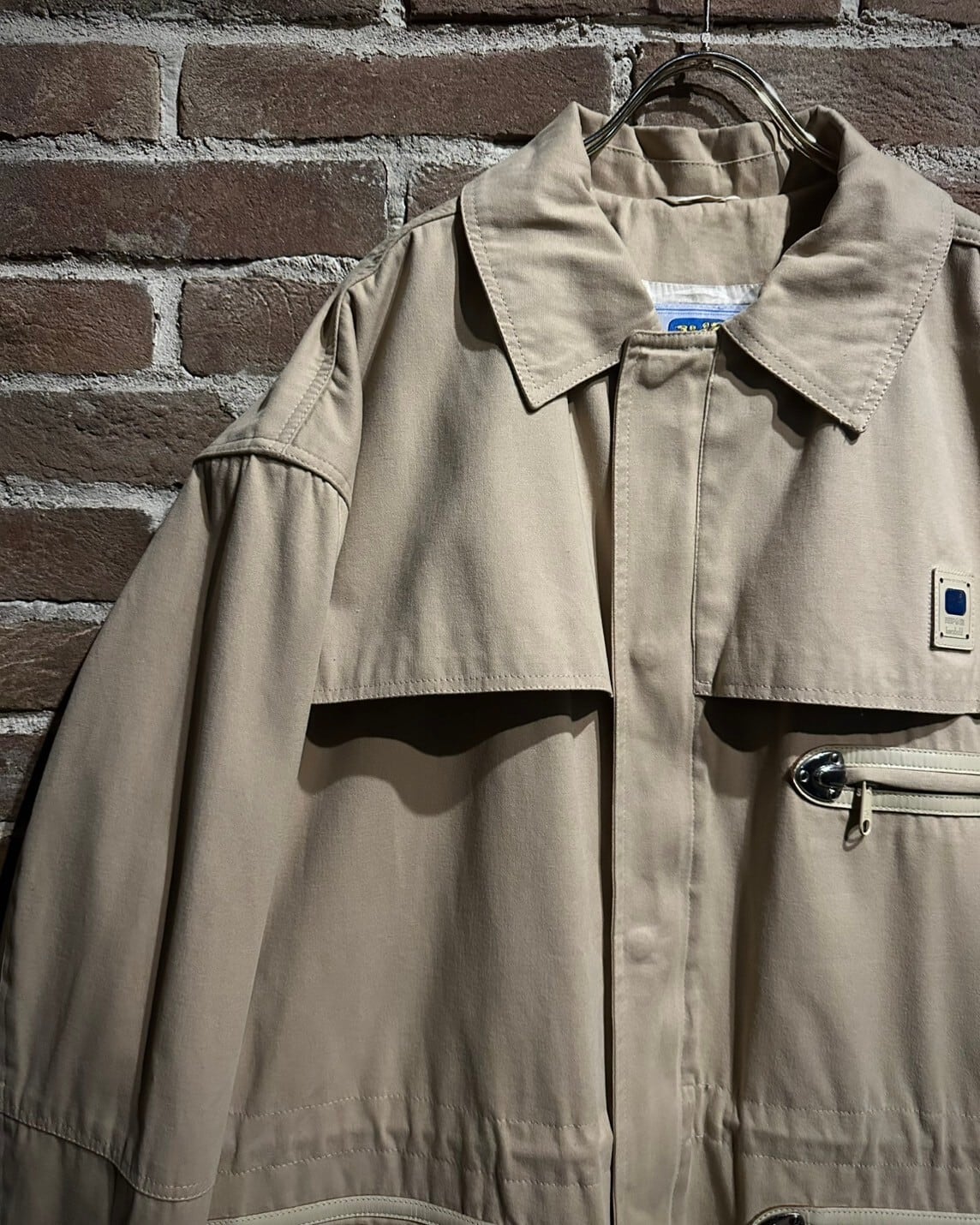 ハリのあるコットンを用いたボディに、パッチとポケット部分には同ブランドのシグネチャーでもあるレザーを用いたジャケット。