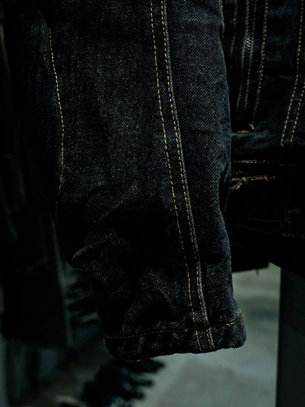 ヴィンテージ市場でも稀少性が高まったブラックデニムのボディに、レーシングジャケットのギミックを落とし込んだ、スペシャルなデニムジャケット。