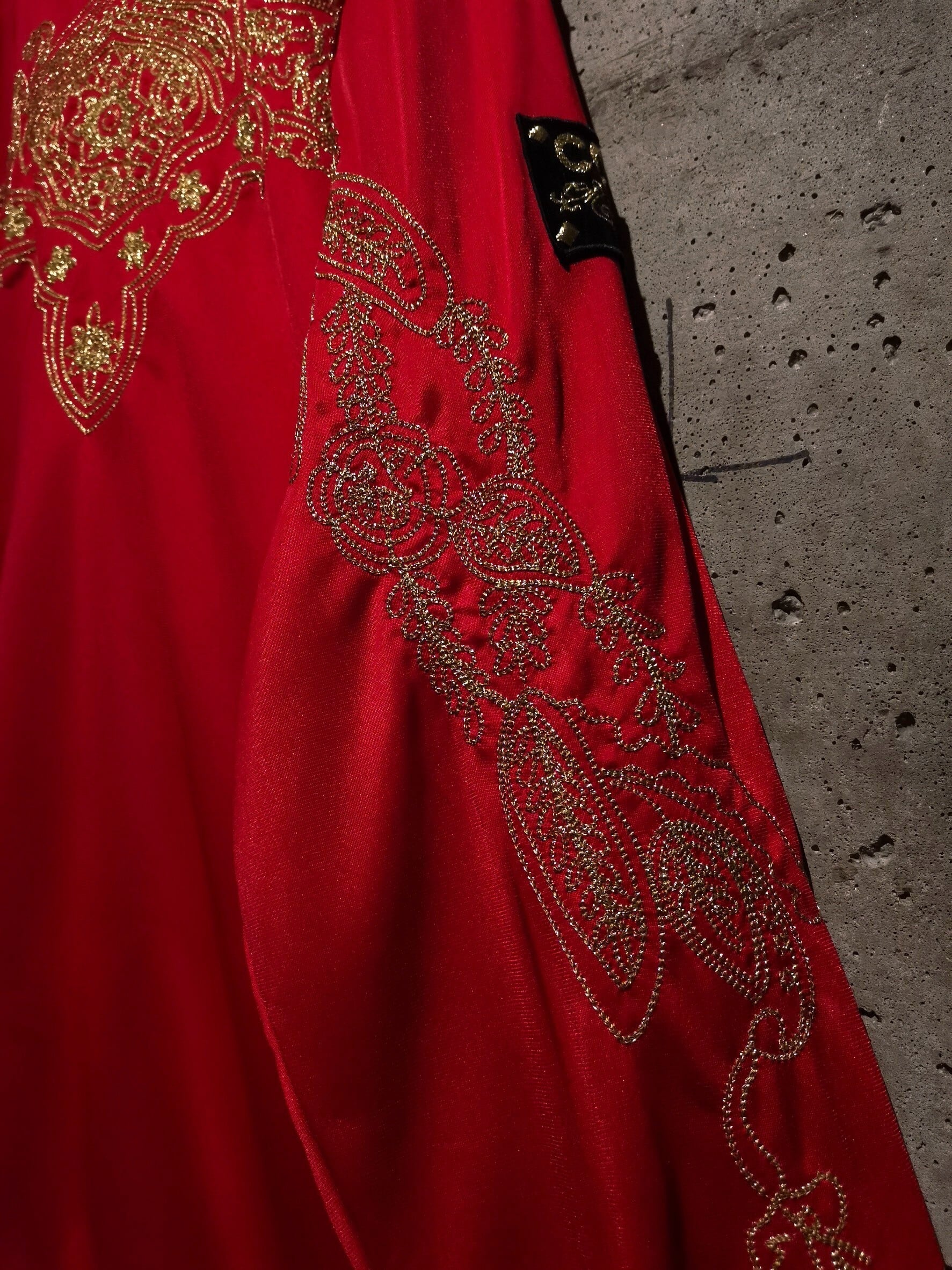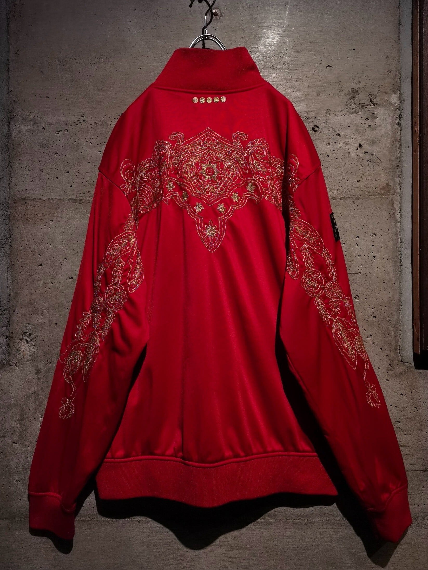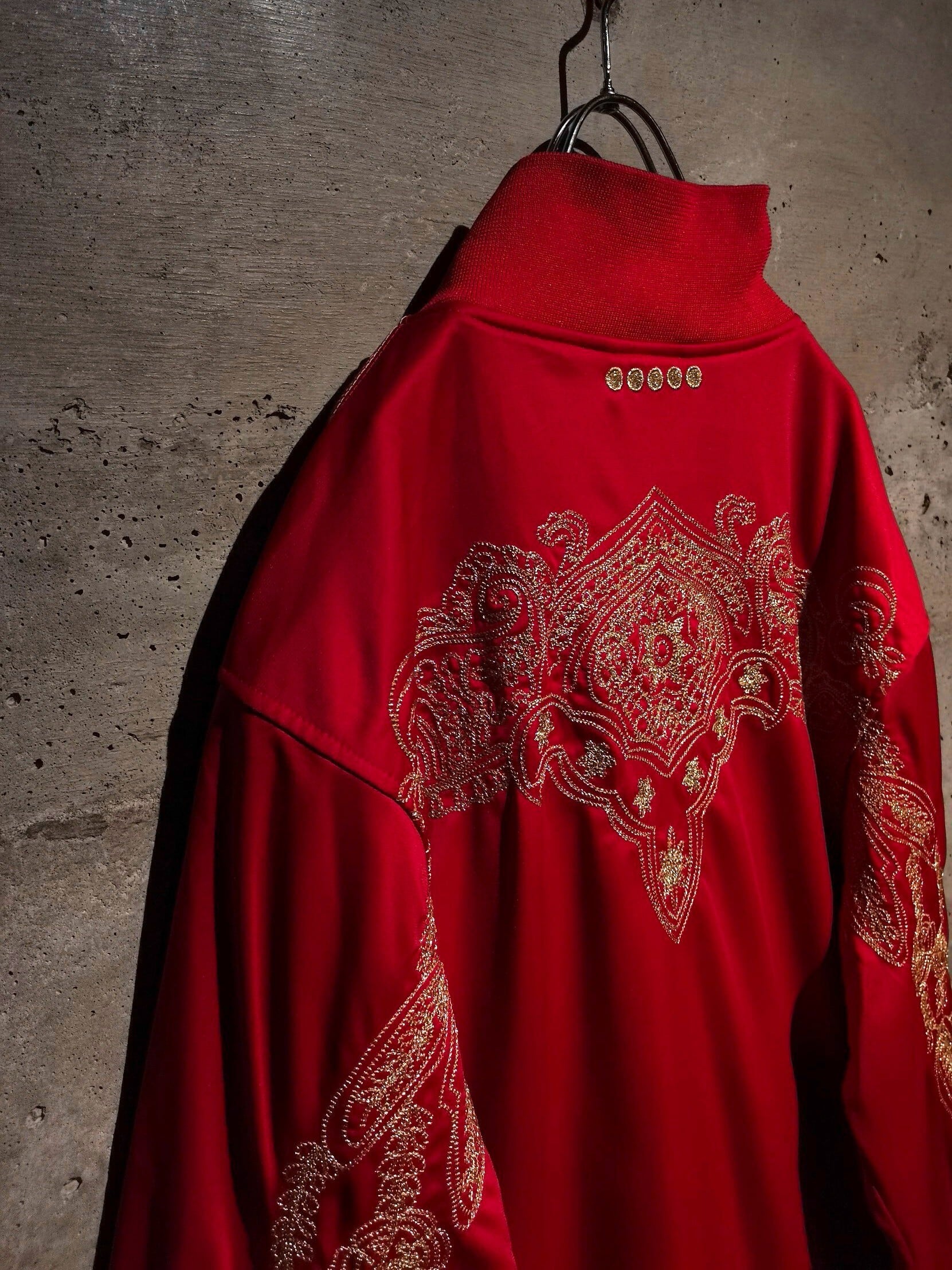 真紅のボディに、煌びやかな輝きを見せるゴールドの刺繍でデザインを落とし込んだ逸品。