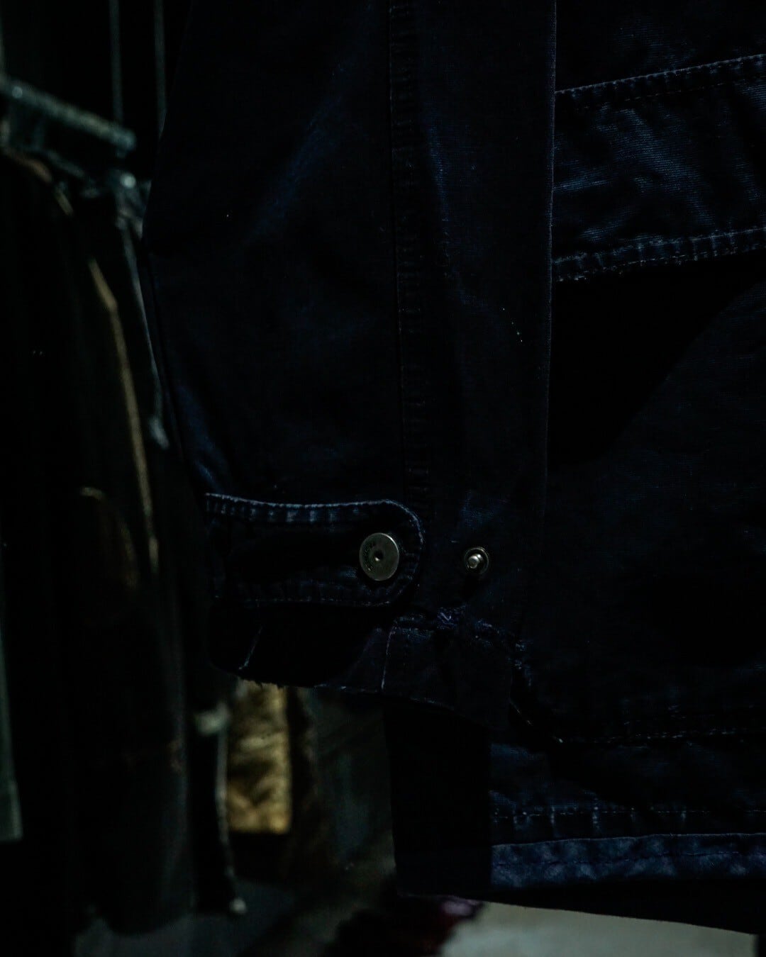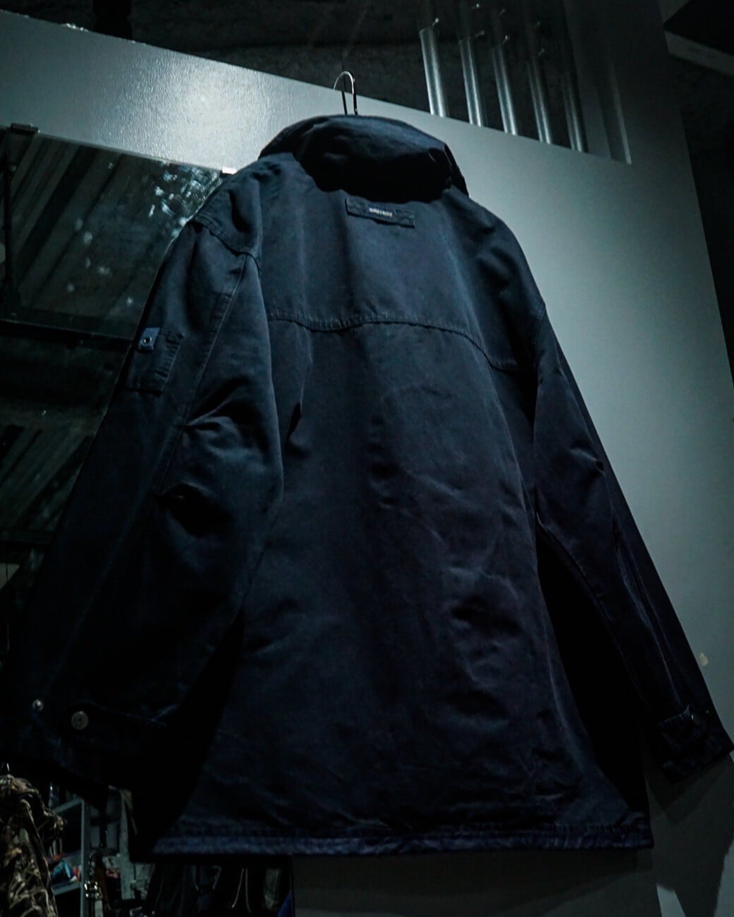 フロントには大きめのフラップポケット、袖口のアジャスターボタン、アームにはアクションプリーツ、そして襟にはドローコードと、細部に至るギミックも機能的で、拘りの見える作り込みが◎