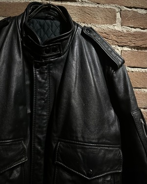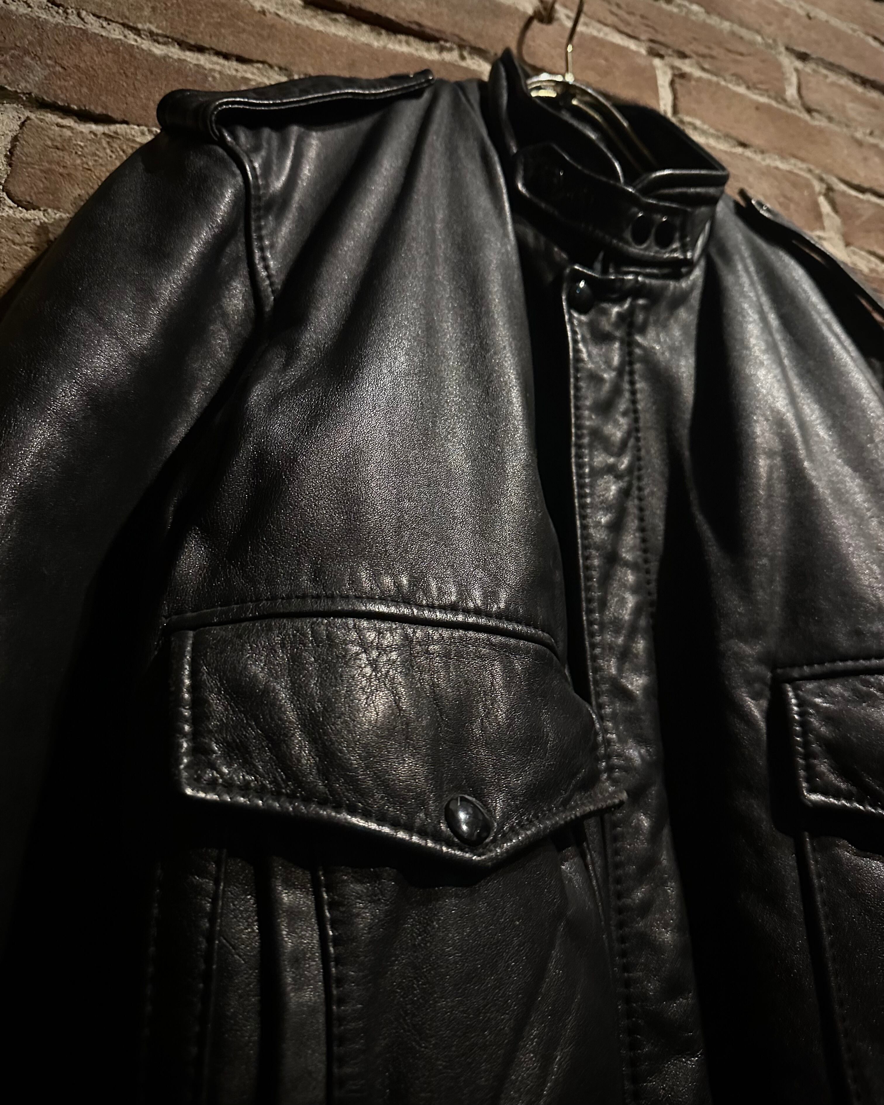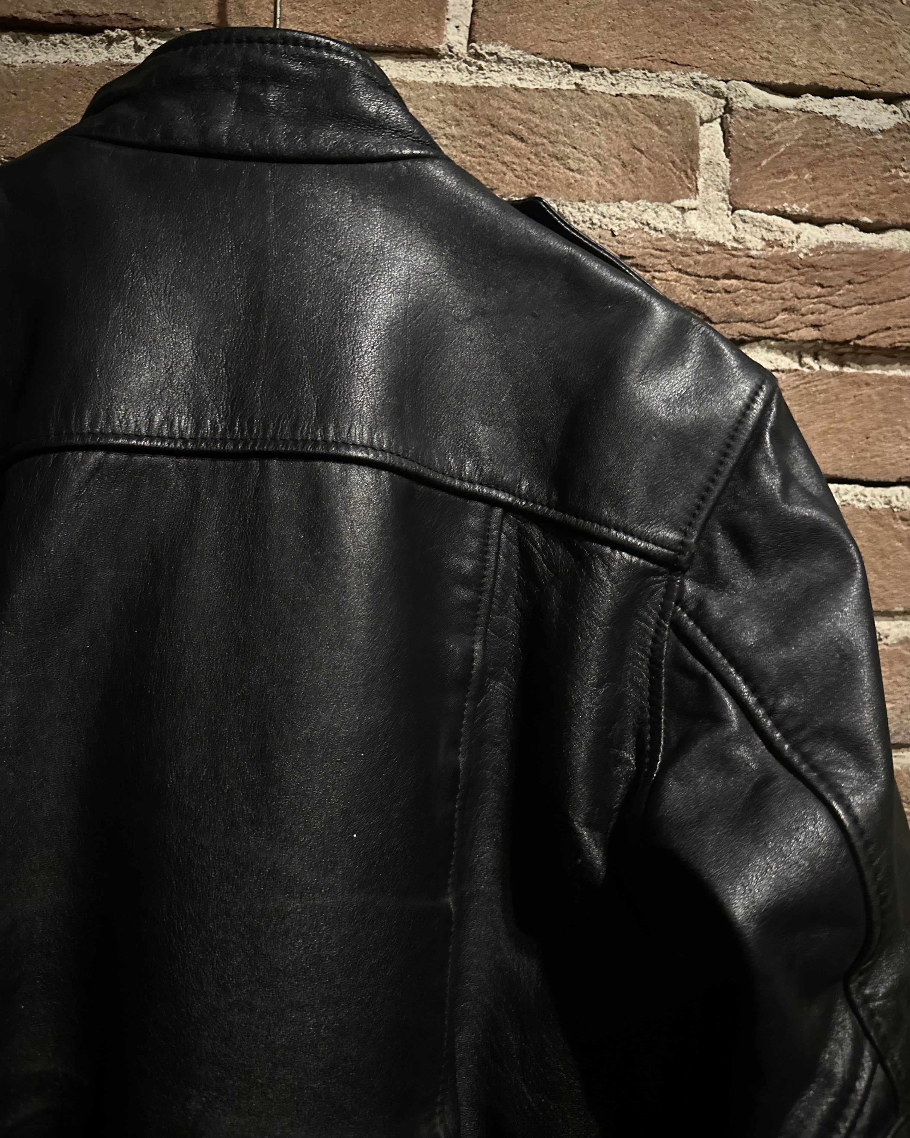1931年に米陸軍航空隊に採用された、フライトジャケットの名作"A-2"をデザインソースにした1着。写真からもヒシヒシと伝わる上質なブラックレザーが無骨さを引き立ててくれています。
