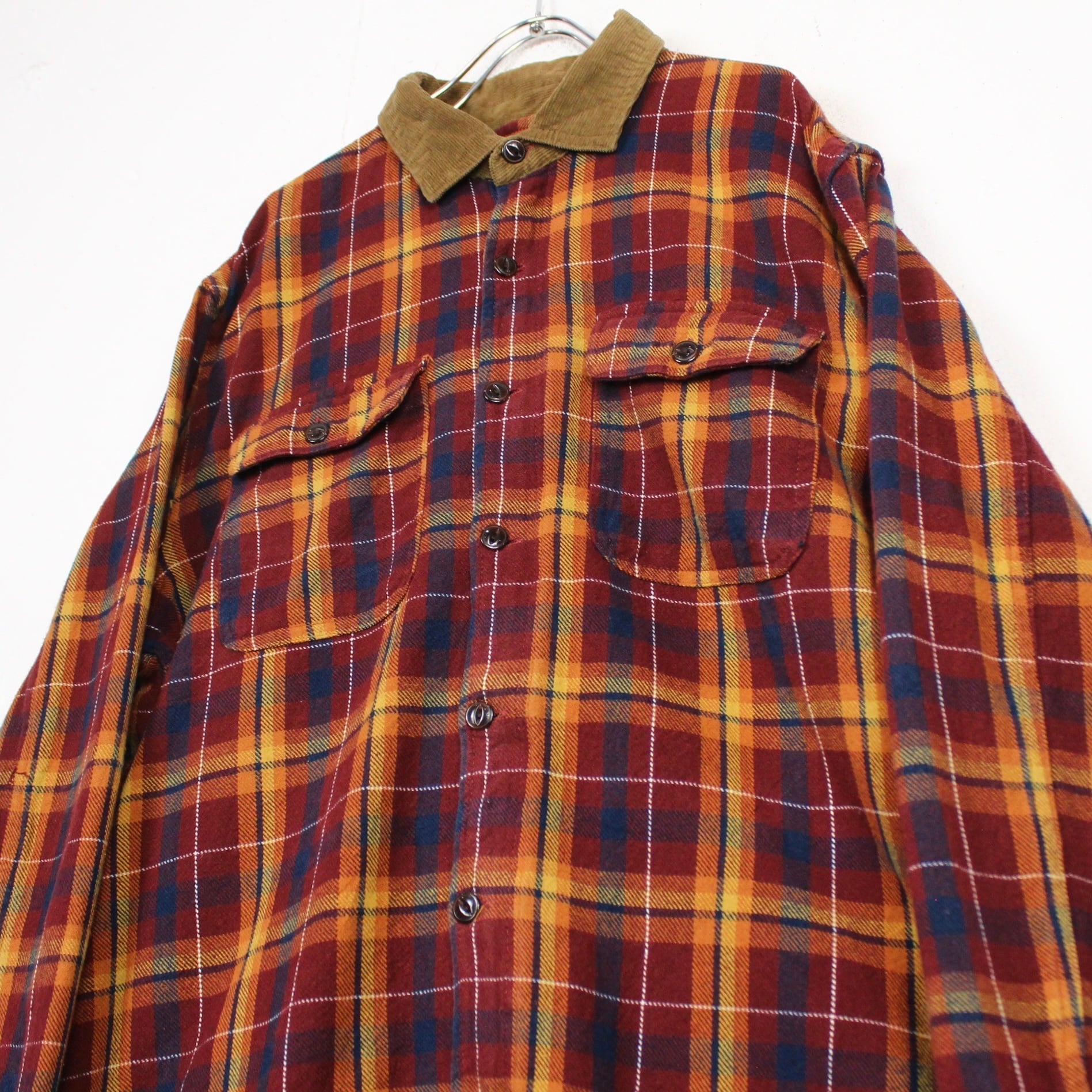 襟にはブラウンのコーデュロイを切り替え、デザインの温かみを作り、濃淡のついたチェック柄で立体感を演出しています。チェックシャツは古着でも定番のアイテムですが、こちらは野暮ったくなく、デザインバランスに秀でた仕上がりとなっています。