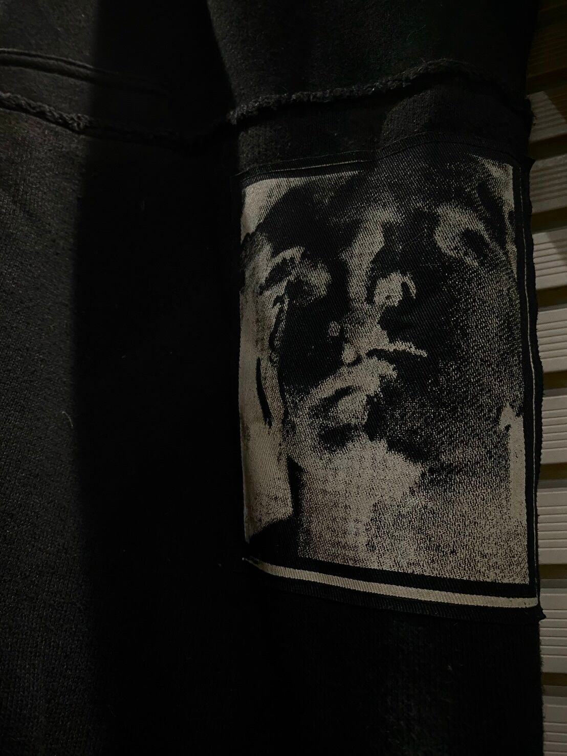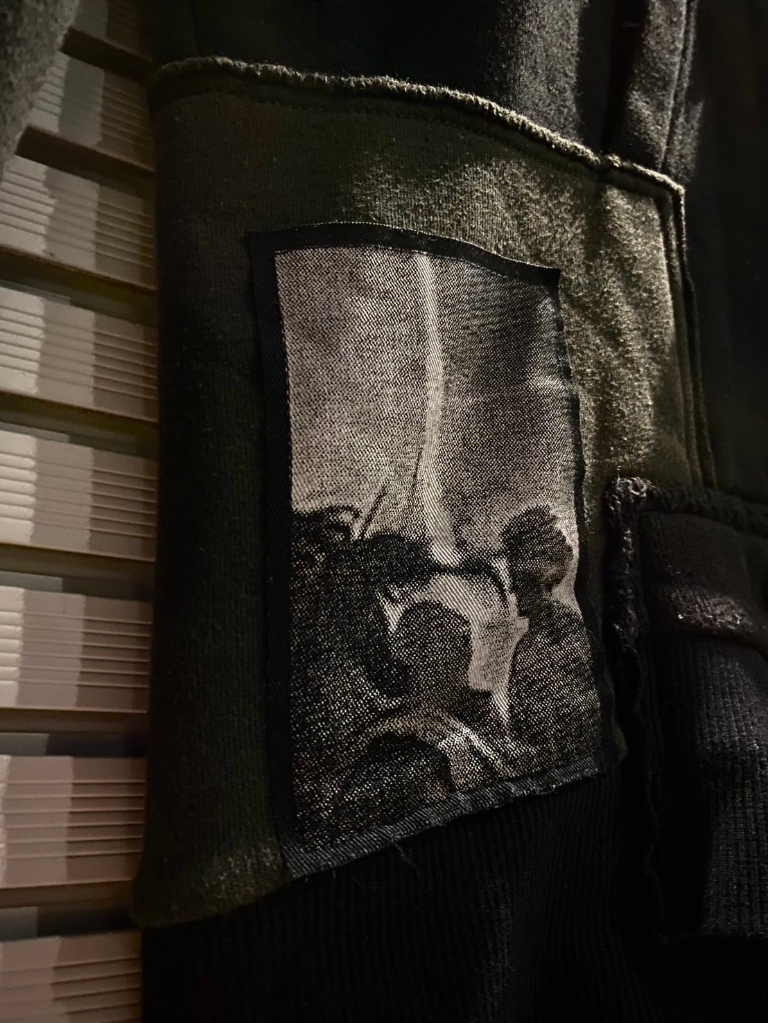 さらにモノトーンのアート風の生地が載せられており、視覚的インパクトに。シンプルなブラックをベースにアート的な要素が加わることで、ファッションに強いメッセージ性を持たせることができ、見る人の目を惹きます。