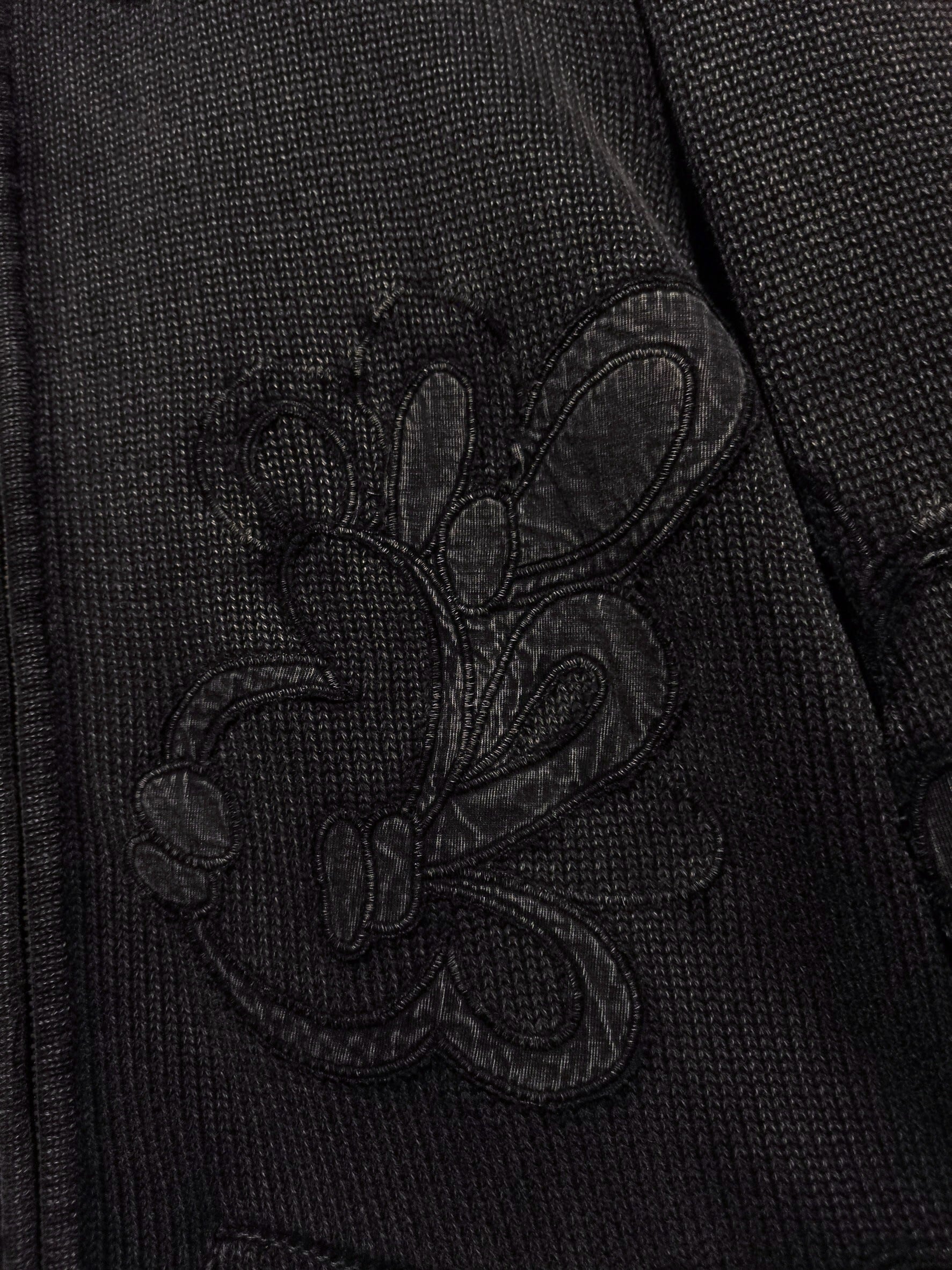 柔らかくしなやかなコットン素材を用いたフェードの効いたグレーボディに、当ブランドらしいボタニカルな雰囲気のあるフラワーモチーフのパッチを載せた1着。