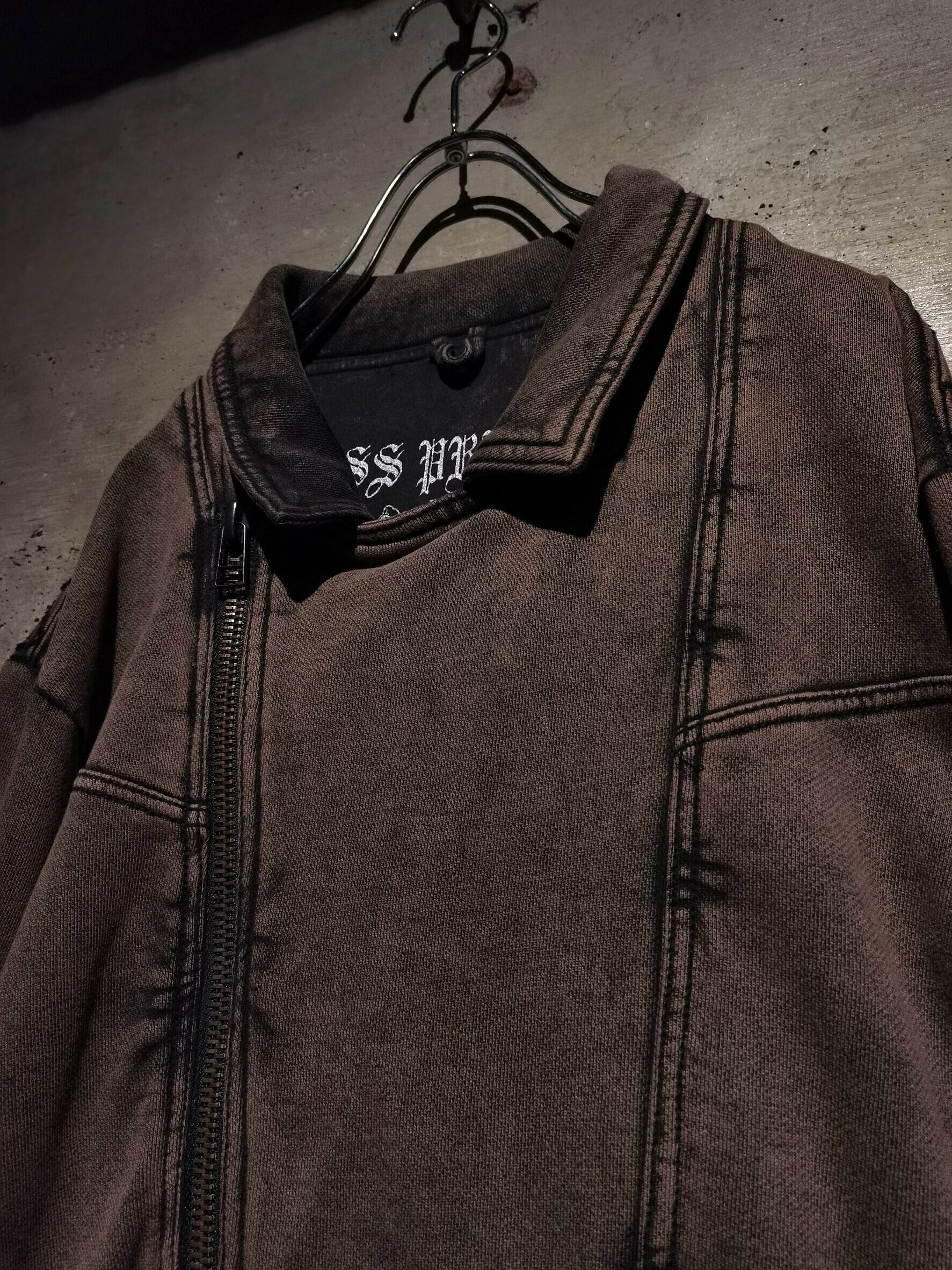 美しいフェード加工が施されたスウェット地をボディに使用し、ダブルライダース型に落とし込んだ稀有なスウェットジャケット。