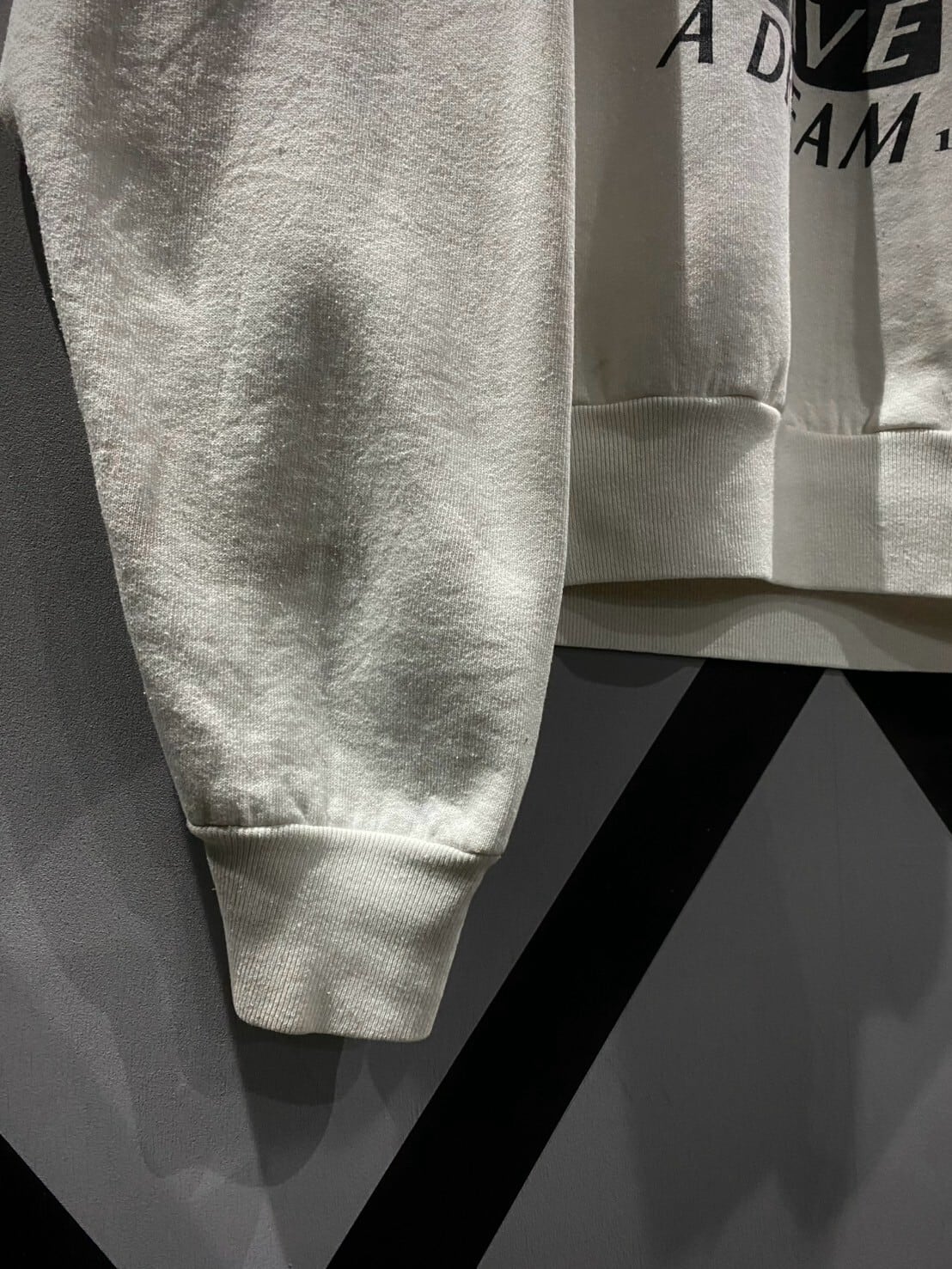 そんな偉大な人物が美しい白ボディにプリントされたプルオーバースウェット。