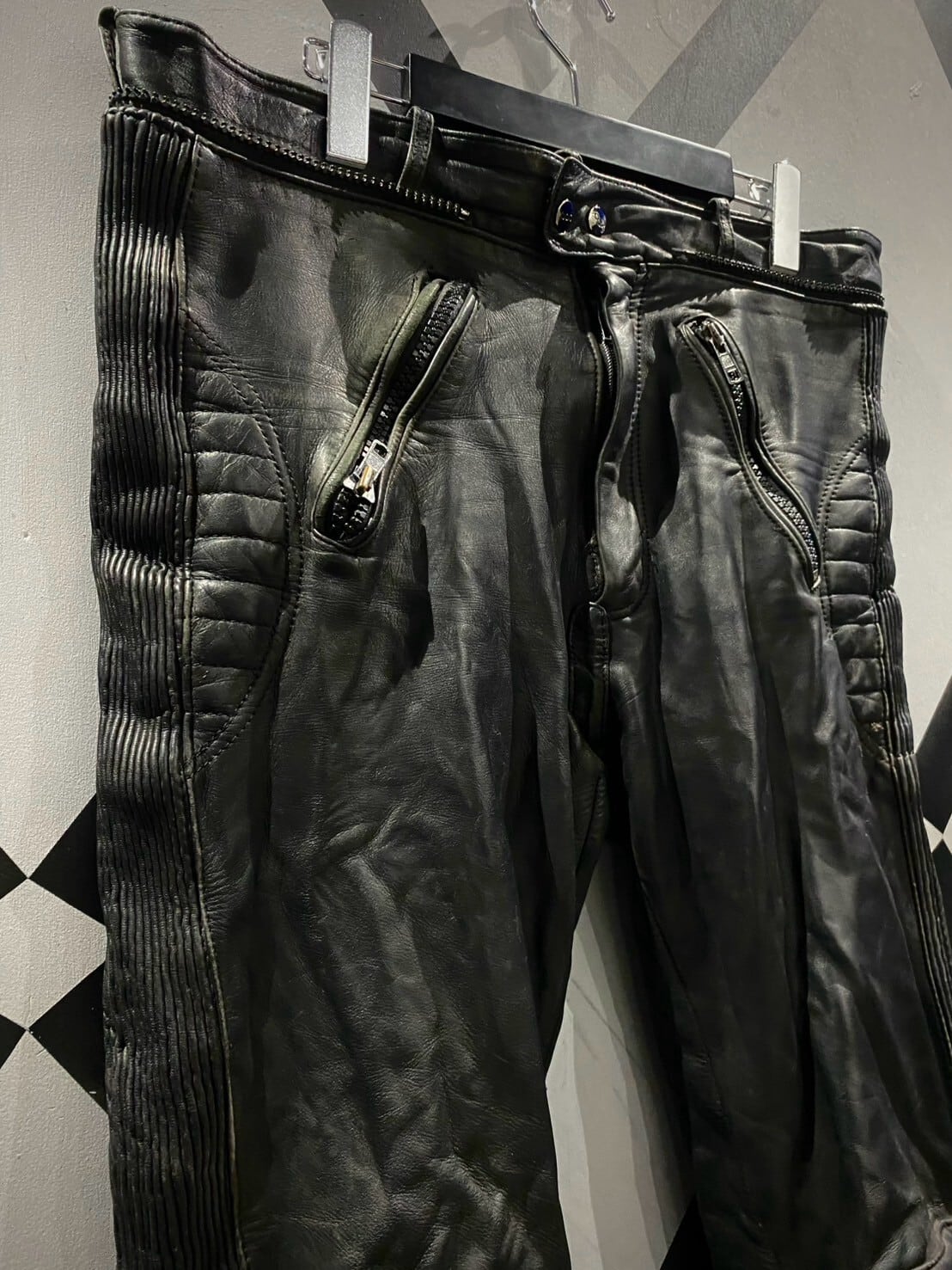 業界関係者の方々からも大好評を頂いている当店の極上レザー。そんな当店の代名詞でもあるレザーアイテムより、がっしりと上質なレザーを用いた、デザイン性の光るスペシャル且つ稀有なモーターサイクルレザーパンツが入荷。