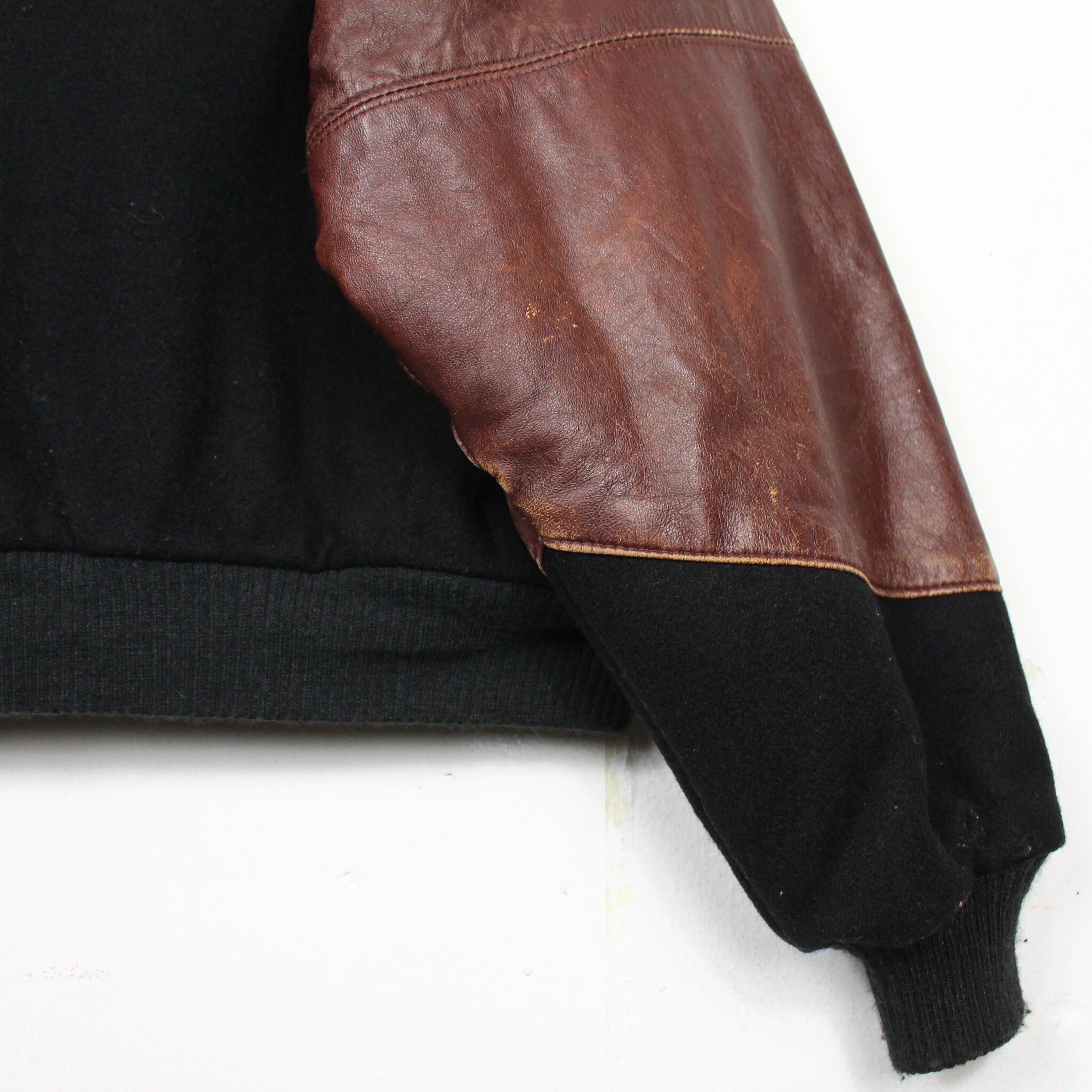 目の詰まった上質なウールのボディに、アームには柔らかなラムレザーを切り替えたスタジャン。
