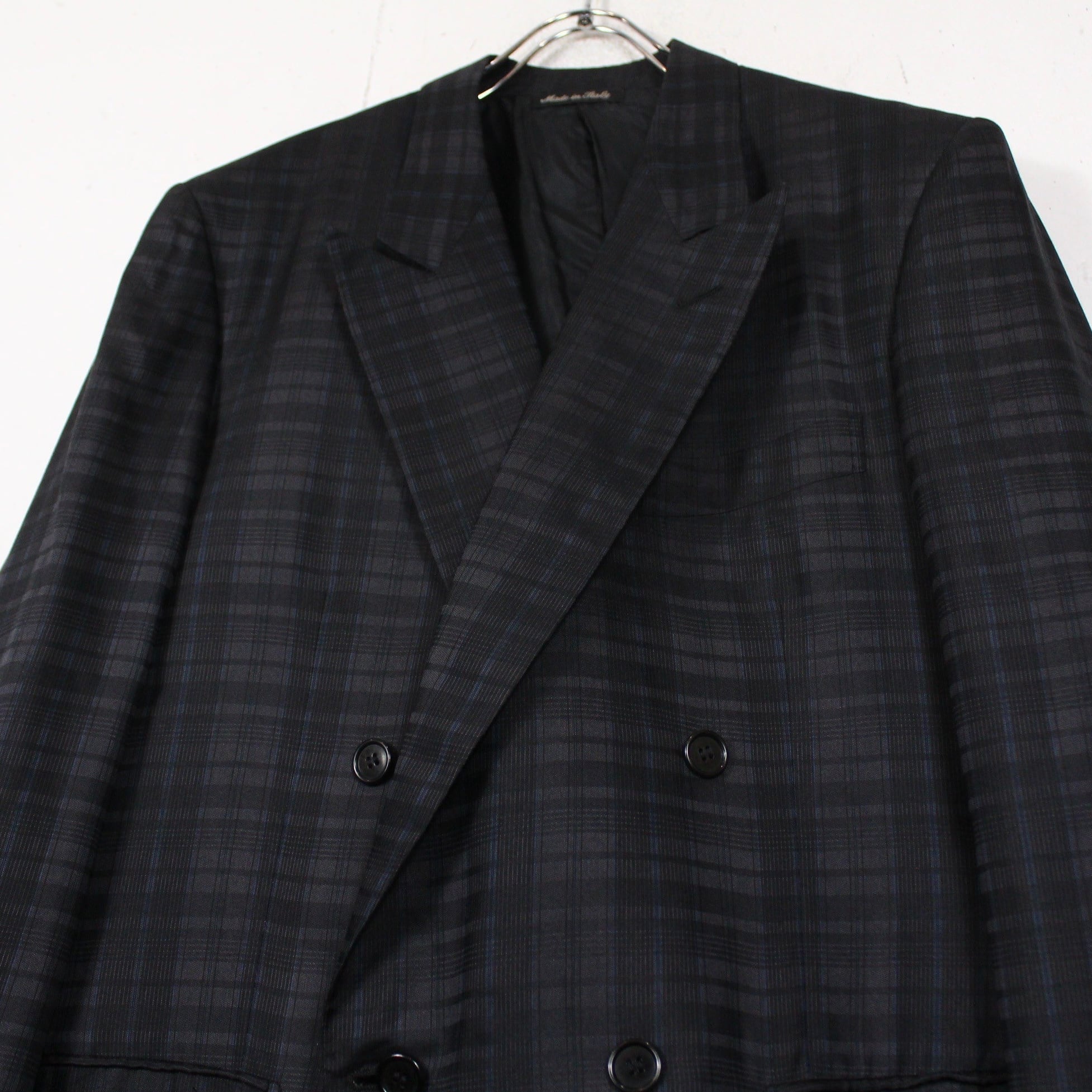 フロントはダブルブレストのピークドラペル仕立て。落ち着きのあるデザインながらも存在感のある仕上がりに。