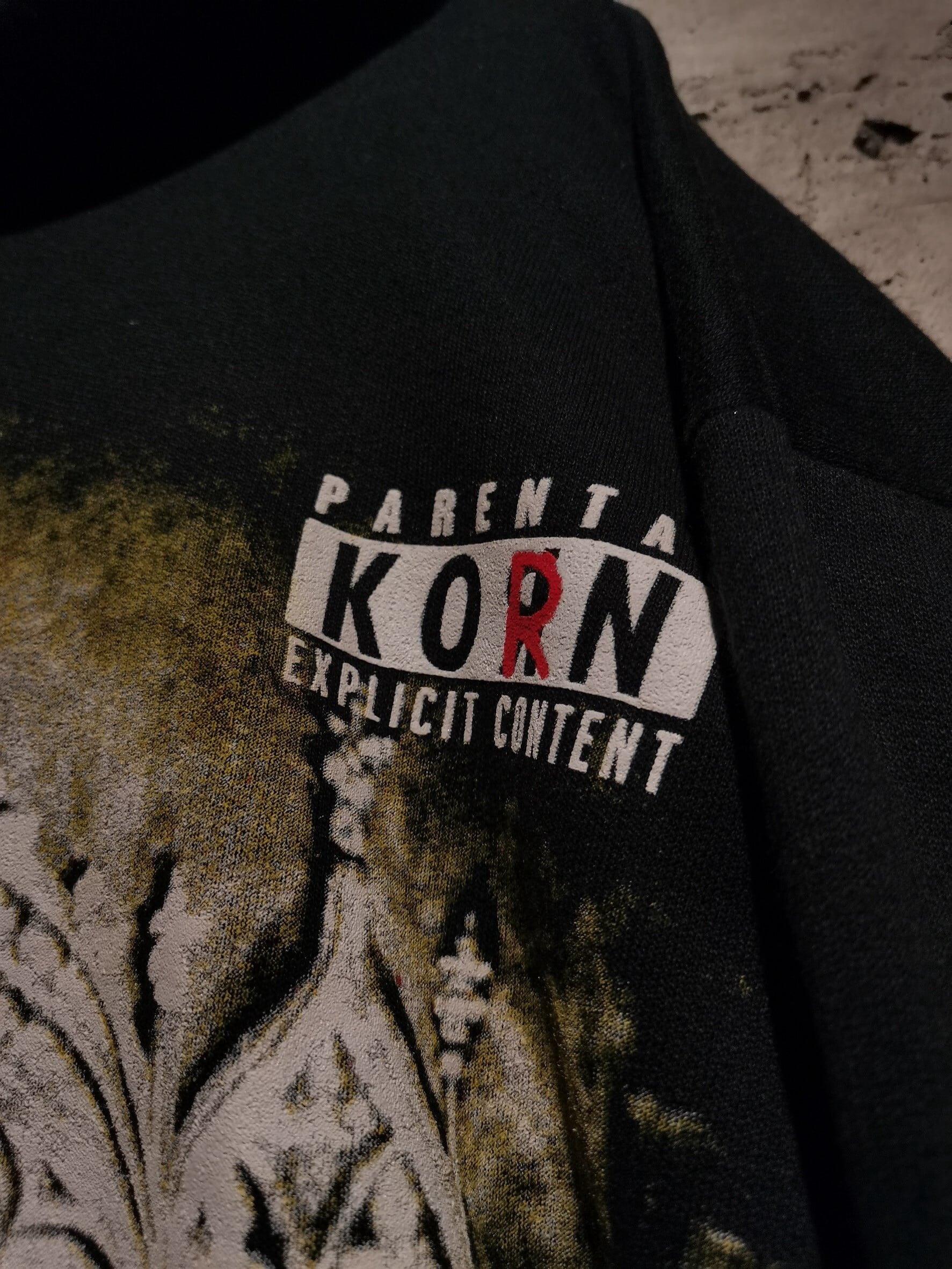 今も尚世界中で根強い人気を誇る"KORN"。ヴィンテージTシャツをはじめとし、人気と共に希少価値も高まってきている中、デザイン、状態、サイズ感どこをとっても文句無しの1着となっております。