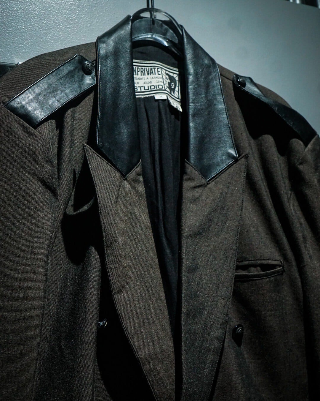柔らかくもハリのあるブラウンのボディをベースに、襟、エポレットにブラックのレザーを切り替えたテーラードジャケット。