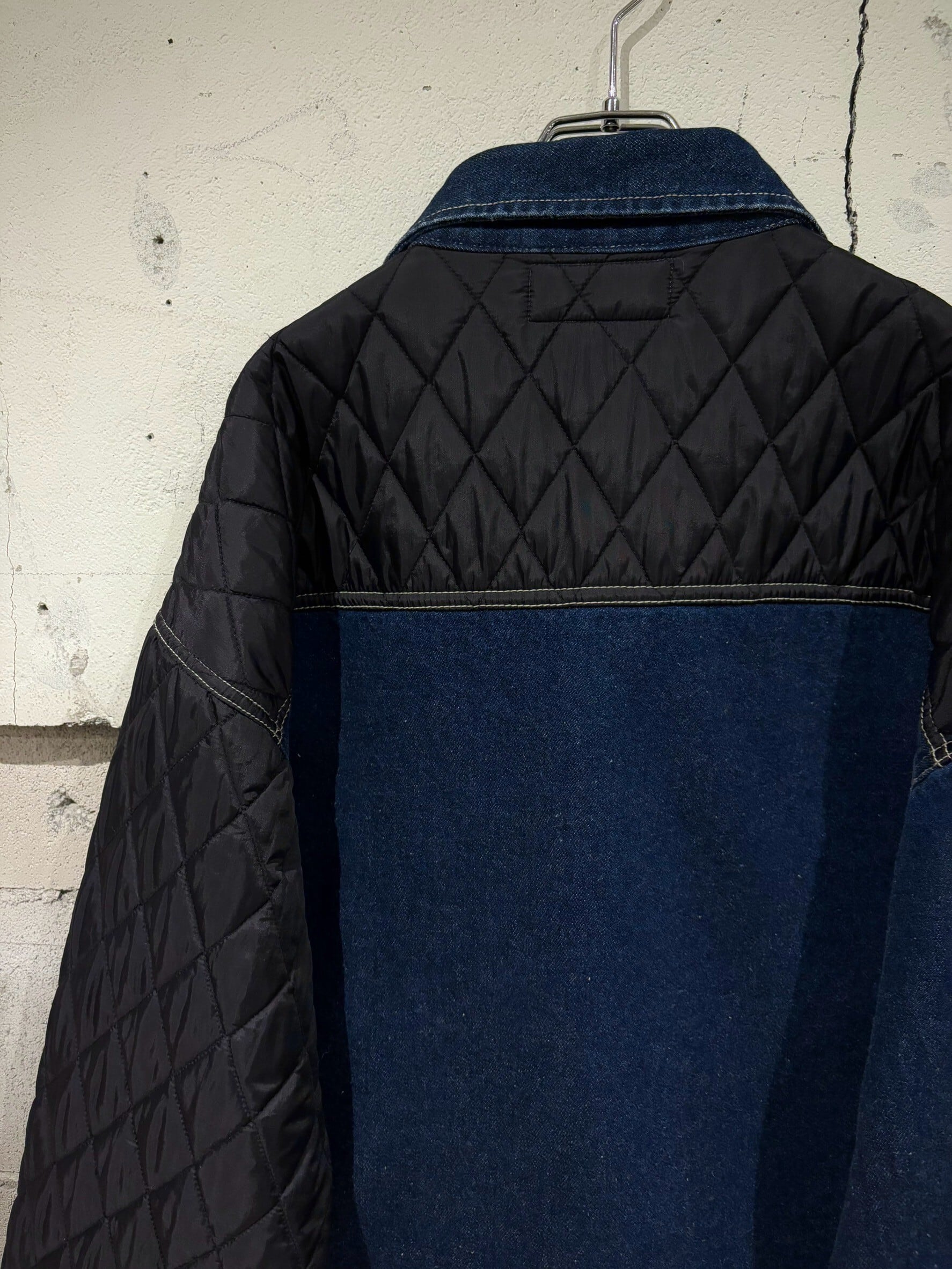 コシのあるデニムのボディに、左ポケット、アーム、背面のヨークにキルティングを切り替えたデニムジャケット。