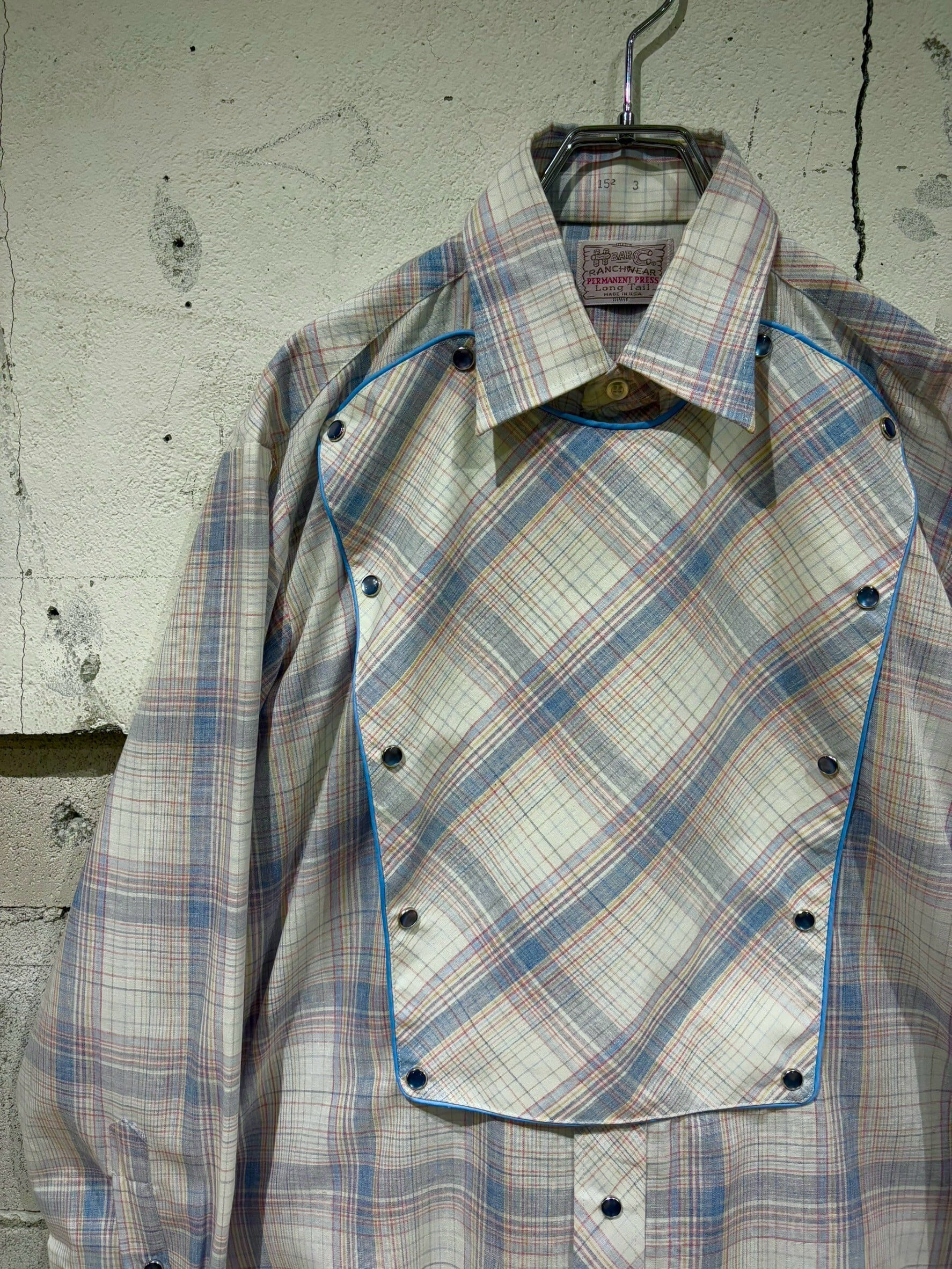 肌触りの良い素材を用いたボディに、淡いカラーリングでチェック柄を載せたコンディション良好な70'sヴィンテージの1着。