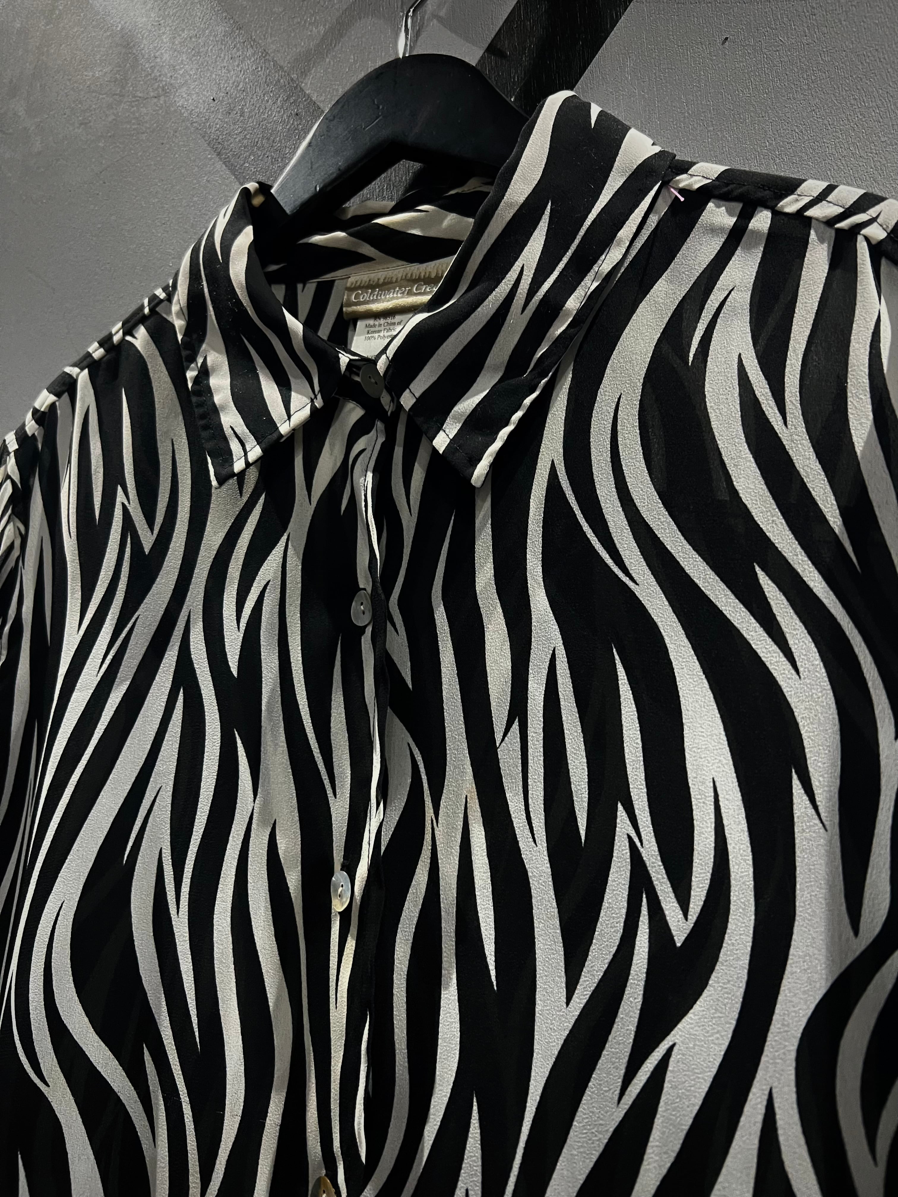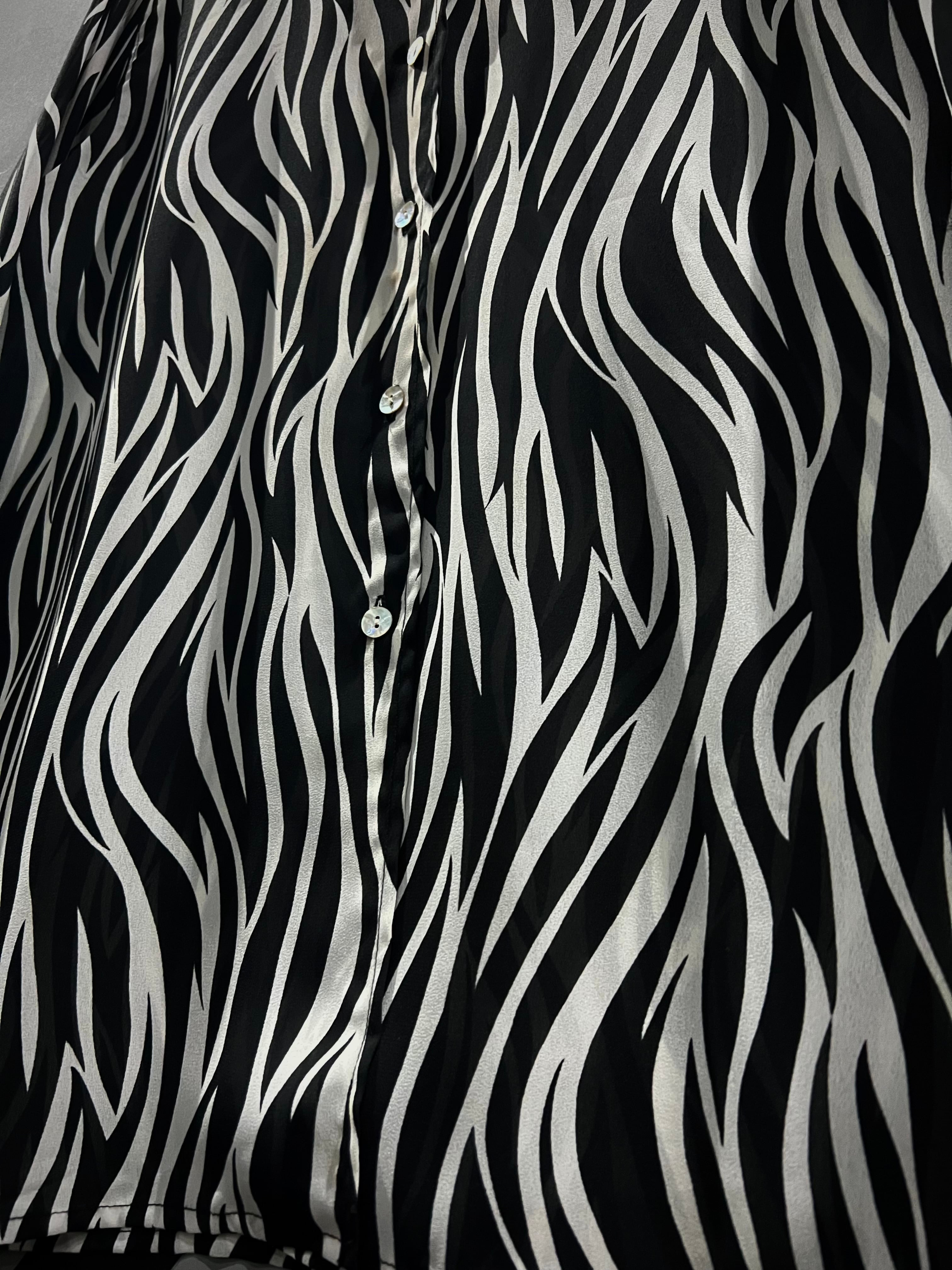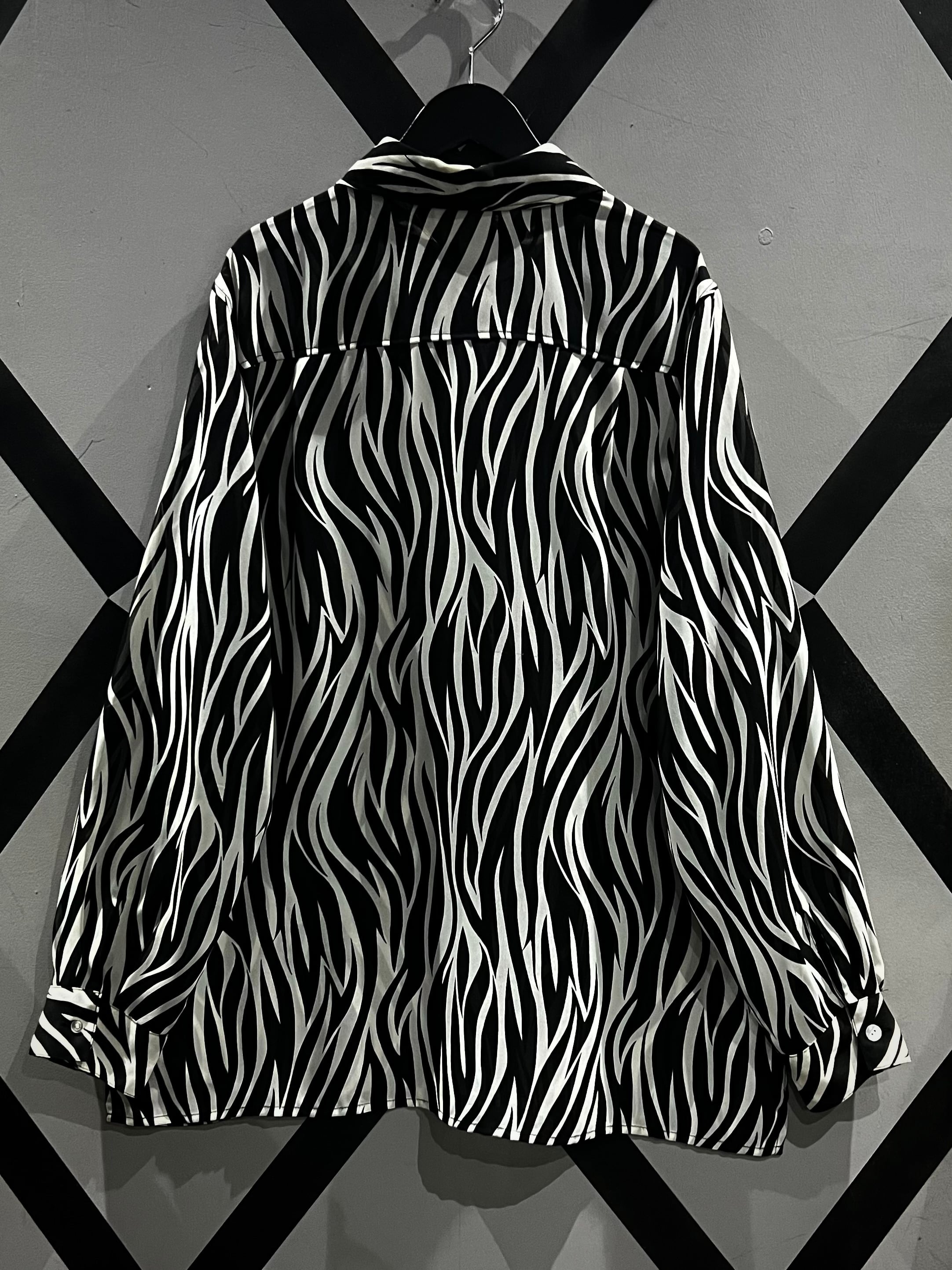 透け感の美しいブラックシアーのボディに、ホワイトのラインによってゼブラ柄を載せた長袖シャツ。