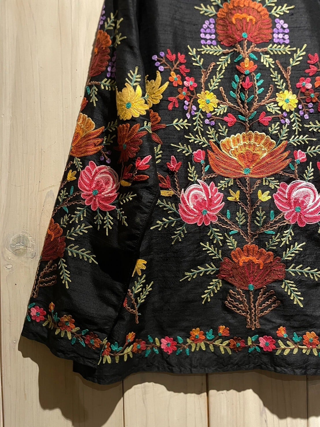 ブラックベースの中に咲く色とりどりの花々。刺繍が非常に緻密で繊細、その美しさに目と心の双方を奪われてしまいます、、、