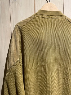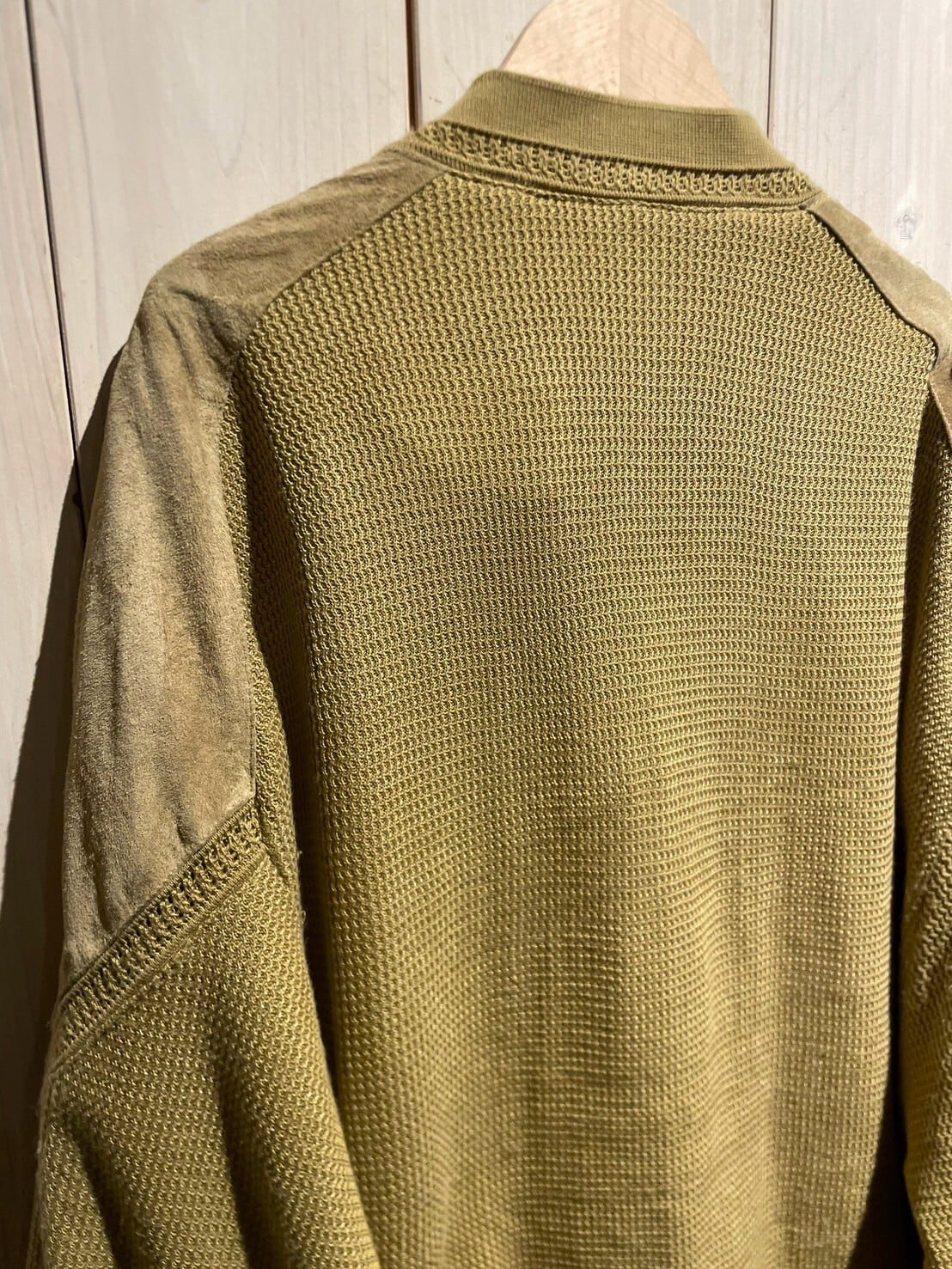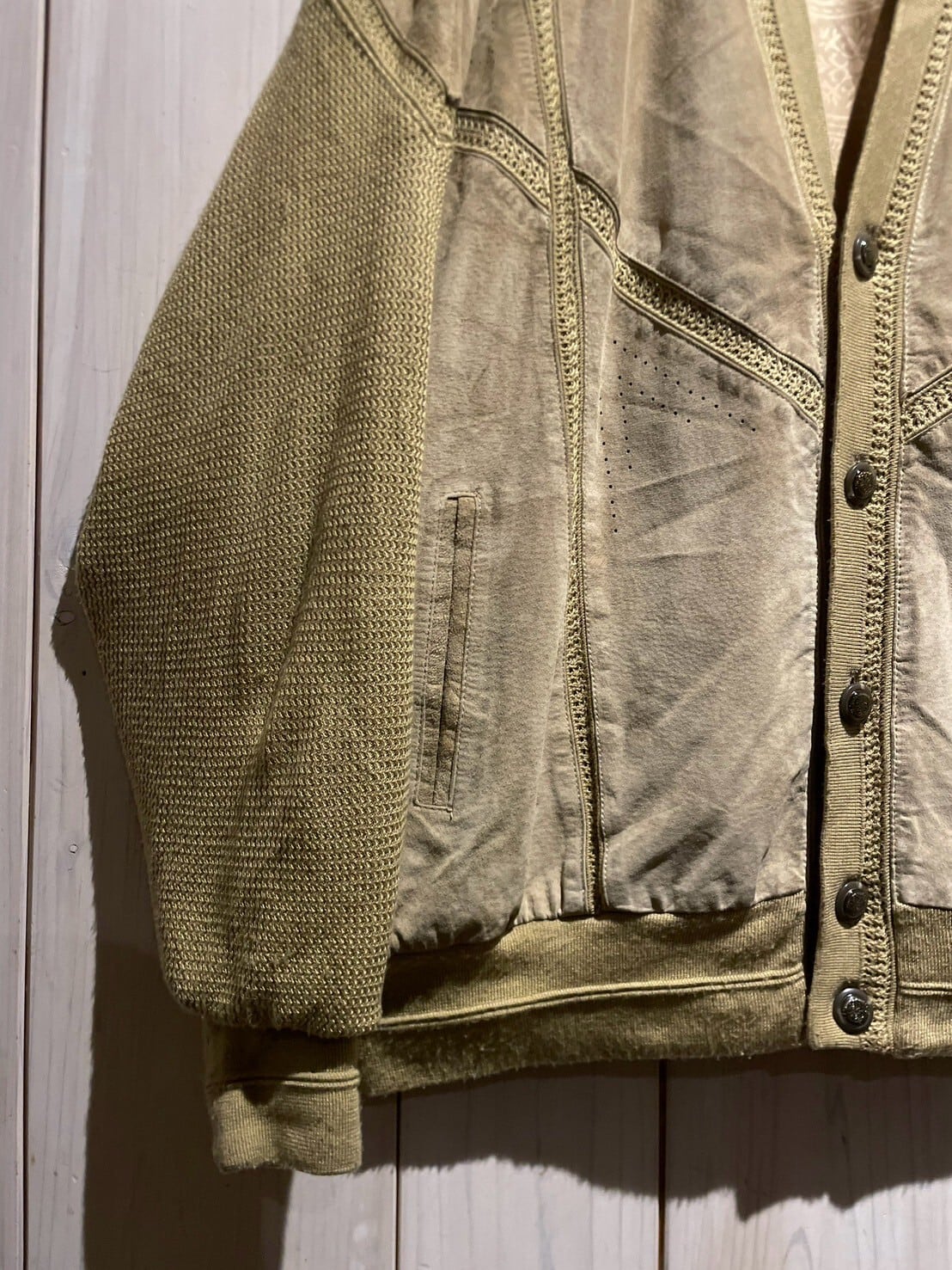 カーディガンには非常に珍しいヌバックレザーをを載せた至極の1着。上質なレザー巧みに組み合わせ1枚に纏め上げたカーディガンジャケットのスペシャルな逸品です。