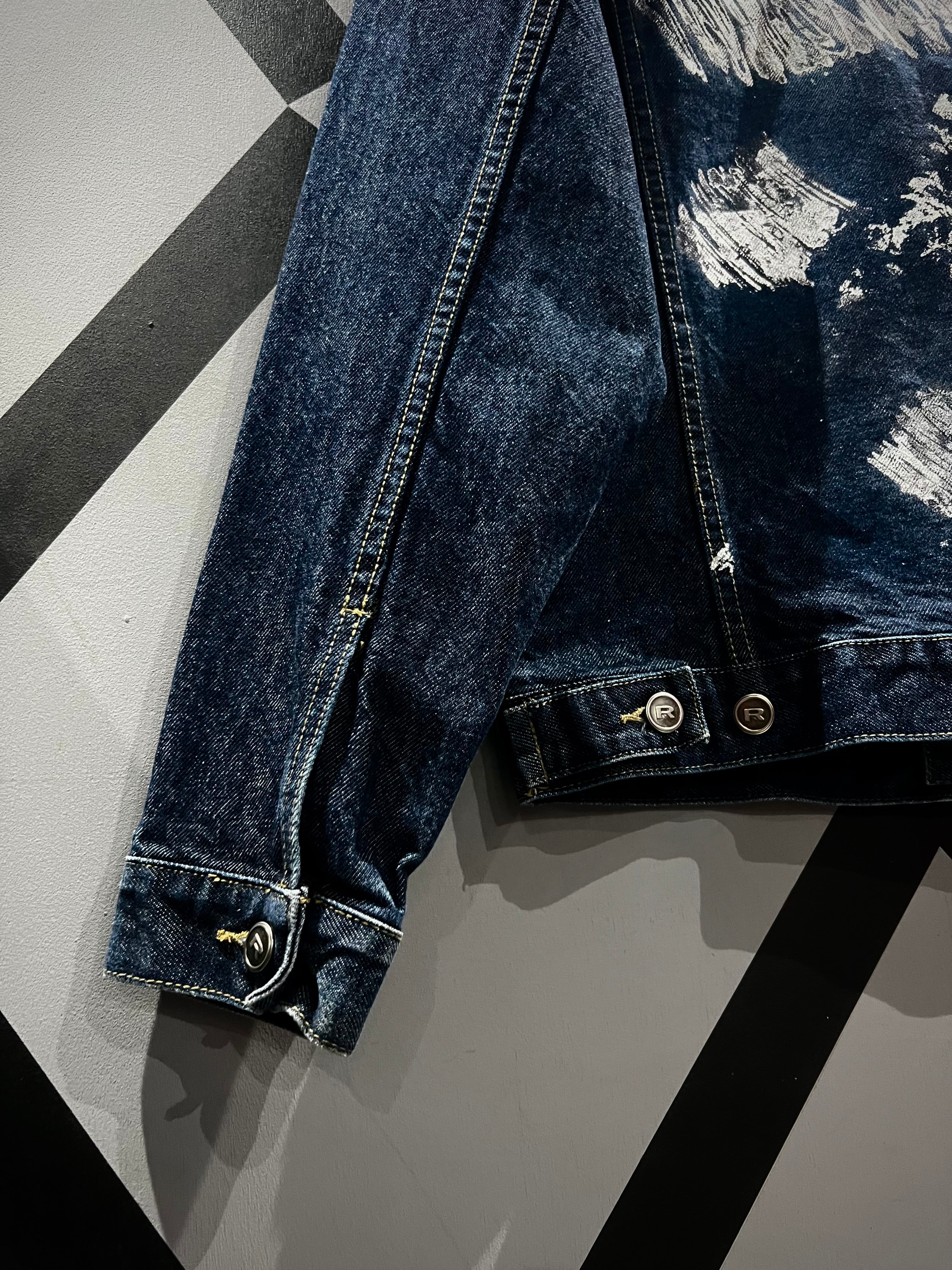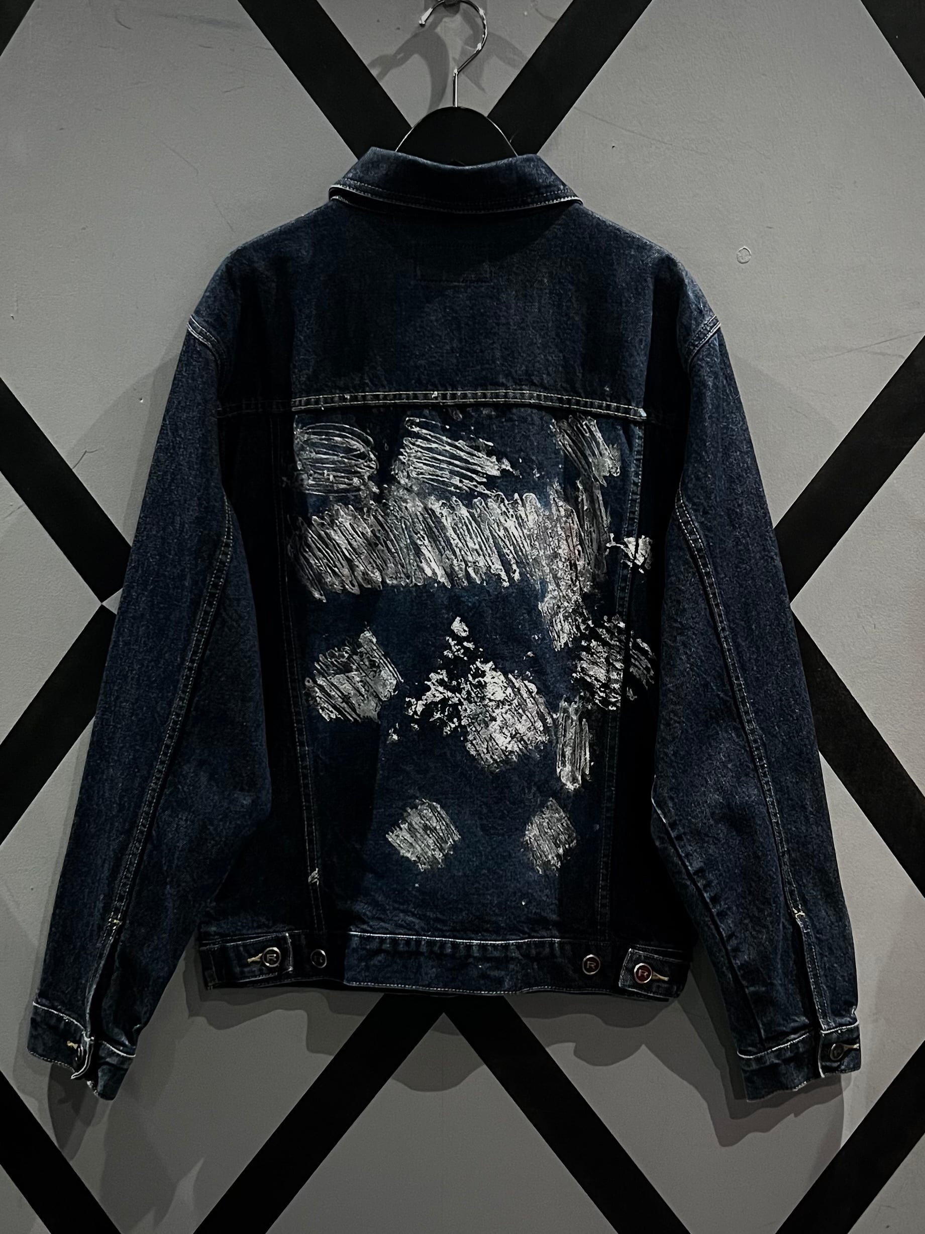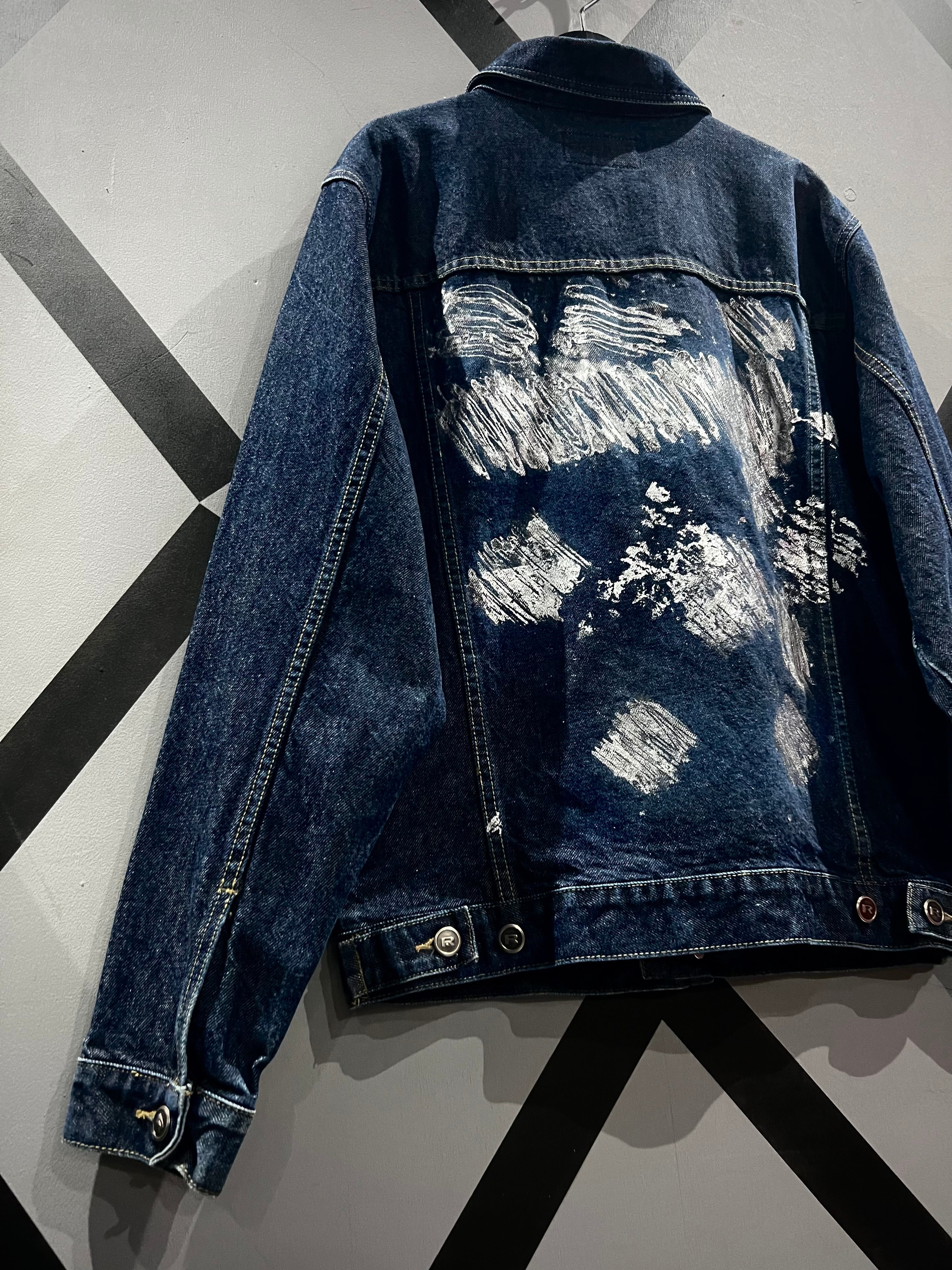 色残りの良い美しいデニムジャケットのボディに、シルバーのペイントを施した1着。