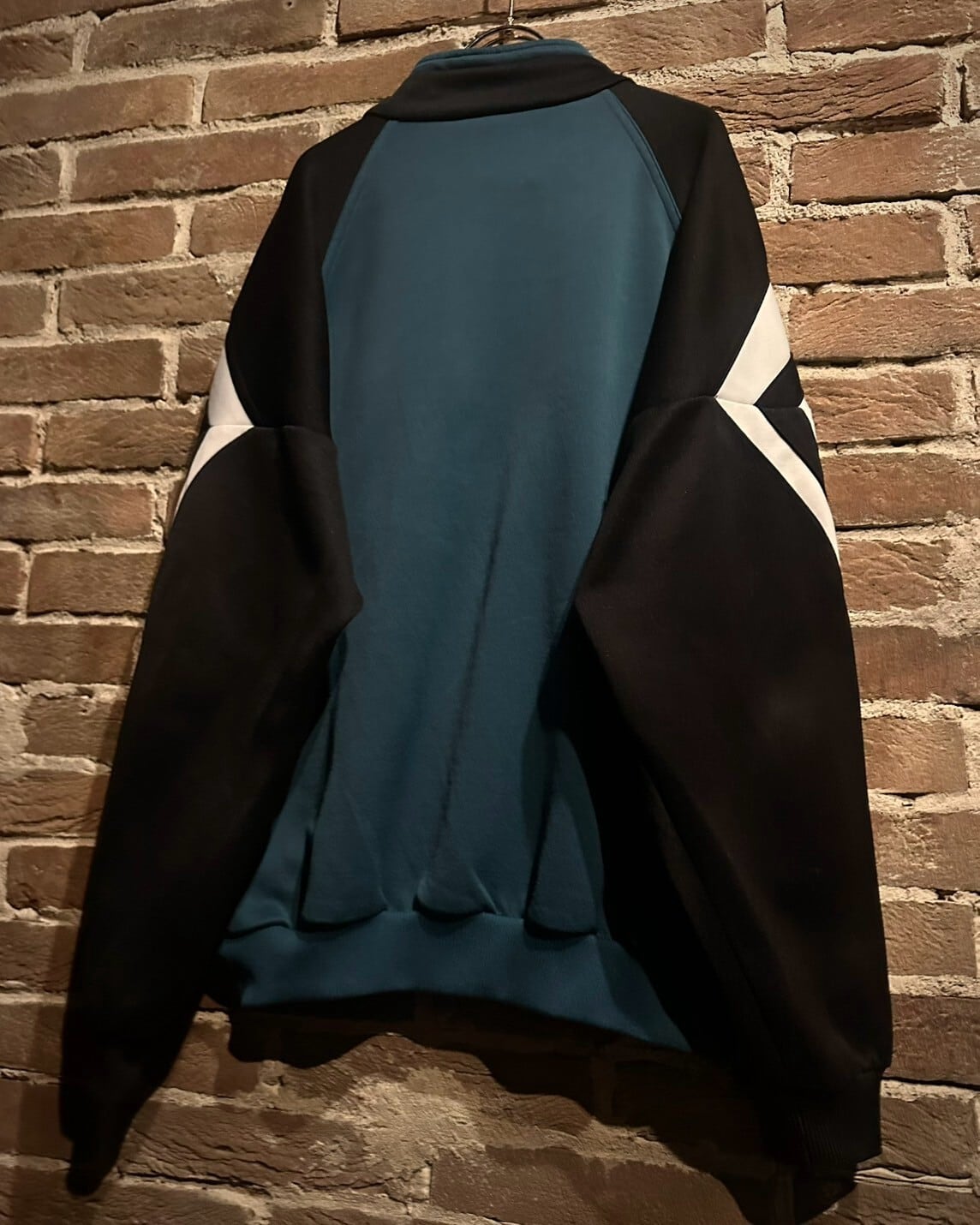 ブラック×ホワイト×グリーンのカラーリングで、エッジの効いた切り替えを施したadidasの80〜90'sのユーロヴィンテージのトラックジャケット。
